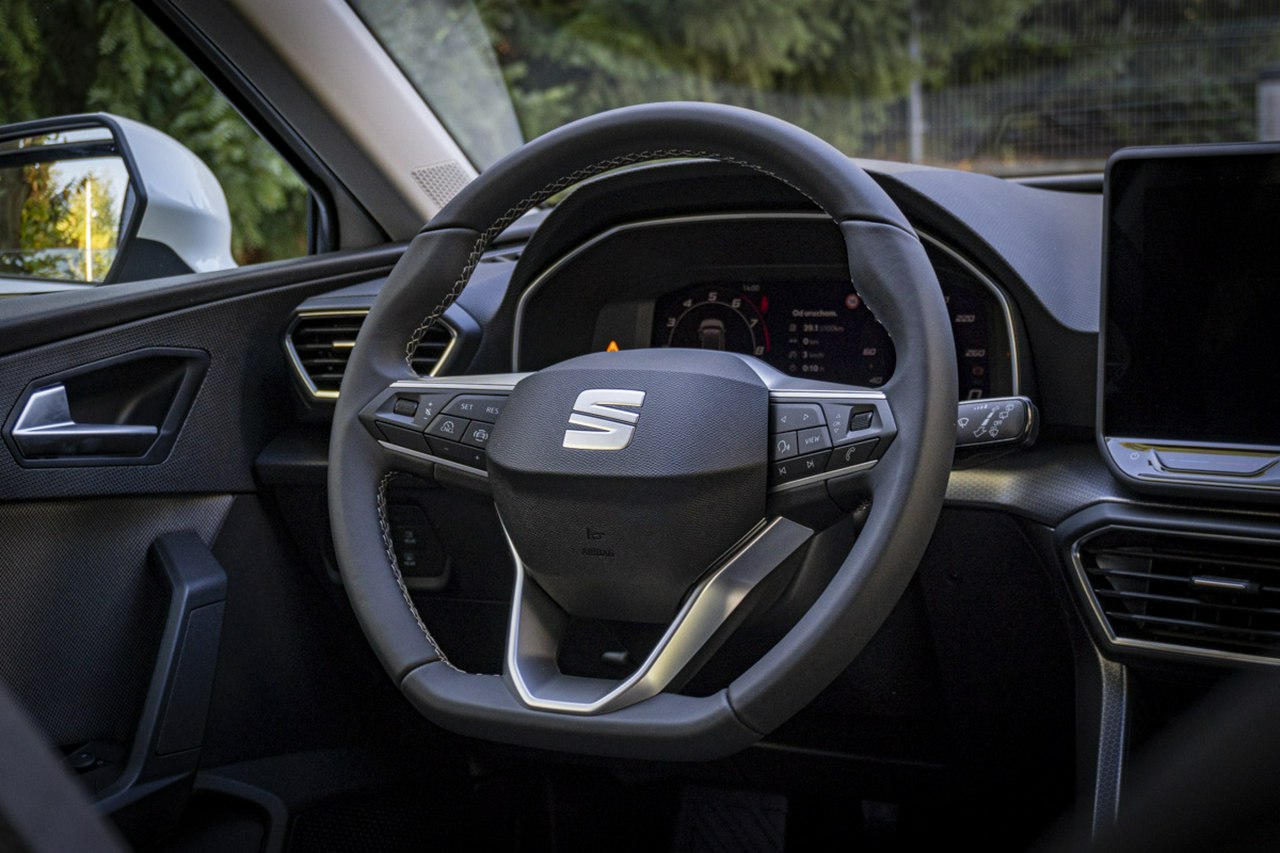 Auto jest z okresu pandemi także mimo wersji FR nie jest w pełni wyposażone (brak: kamery, bezkluczykowego odpalania - jest tylko odpalanie bez kluczyka; brak ACC, brak el. klapa; samościemniające tylko wew. lusterko; brak wyściółki w kieszeniach drzwi, brak grzanych foteli, kierownicy i szyby przedniej - i tego wszystkiego brak mimo wersji ST FR) ale jest system Drive mode i virtual cocpit i dsg 7 z biegiem jałowym oraz sportowe fotele i...