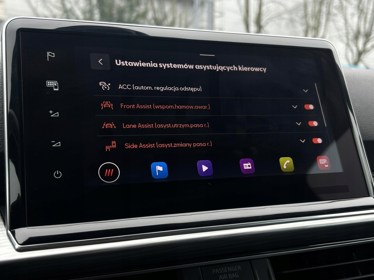 ABS, Asystent pasa ruchu, Czujnik martwego pola, Poduszki boczne przednie, Poduszki boczne tylne, Czujnik deszczu, Czujnik zmierzchu, ESP (stabilizacja toru jazdy), Isofix, Kamera cofania, Czujniki parkowania przednie, Czujniki parkowania tylne, Asystent parkowania, Poduszka powietrzna chroniąca kolana, Poduszka powietrzna kierowcy, Poduszka powietrzna pasażera, Elektryczne szyby przednie, Elektryczne szyby tylne, Elektrycznie ustawiane lusterka, Podgrzewane lusterka boczne, Podgrzewane przednie siedzenia, Przyciemniane szyby, Wspomaganie kierownicy, Radio niefabryczne, Nawigacja GPS, Alufelgi, System Start-Stop, Tempomat, Tempomat aktywny