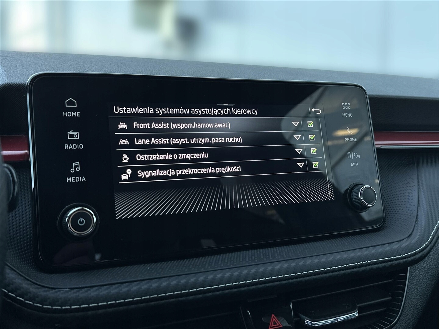Czujnik deszczu, Czujnik zmierzchu, Kamera cofania, Czujniki parkowania przednie, Czujniki parkowania tylne, Asystent parkowania, ABS, ESP (stabilizacja toru jazdy), Isofix, Poduszka powietrzna chroniąca kolana, Poduszka powietrzna kierowcy, Poduszka powietrzna pasażera, Elektryczne szyby przednie, Elektryczne szyby tylne, Podgrzewana przednia szyba, Podgrzewane przednie siedzenia, Przyciemniane szyby, Elektrycznie ustawiane lusterka, Podgrzewane lusterka boczne, Wspomaganie kierownicy, Bluetooth, Gniazdo USB, Radio niefabryczne, Ogranicznik prędkości, System Start-Stop, Tempomat, Alufelgi