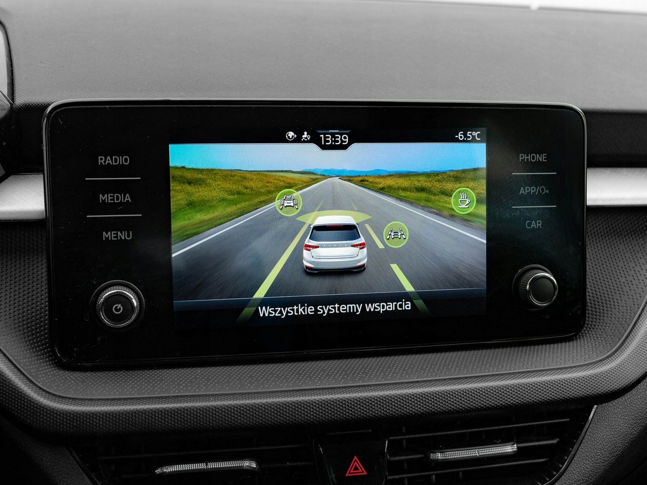 ABS, ASR (kontrola trakcji), Czujniki parkowania tylne, Immobilizer, Asystent pasa ruchu, Czujniki parkowania przednie, Kurtyny powietrzne, Poduszki boczne przednie, Poduszka powietrzna kierowcy, Poduszka powietrzna pasażera, ESP (stabilizacja toru jazdy), Isofix, Poduszki boczne tylne, Elektryczne szyby przednie, Elektrycznie ustawiane lusterka, Wspomaganie kierownicy, Podgrzewane lusterka boczne, Tapicerka ciemna, Tapicerka tekstylna, Bluetooth, Gniazdo USB, MP3, Radio fabryczne, Centralny zamek, Komputer pokładowy, System Start-Stop