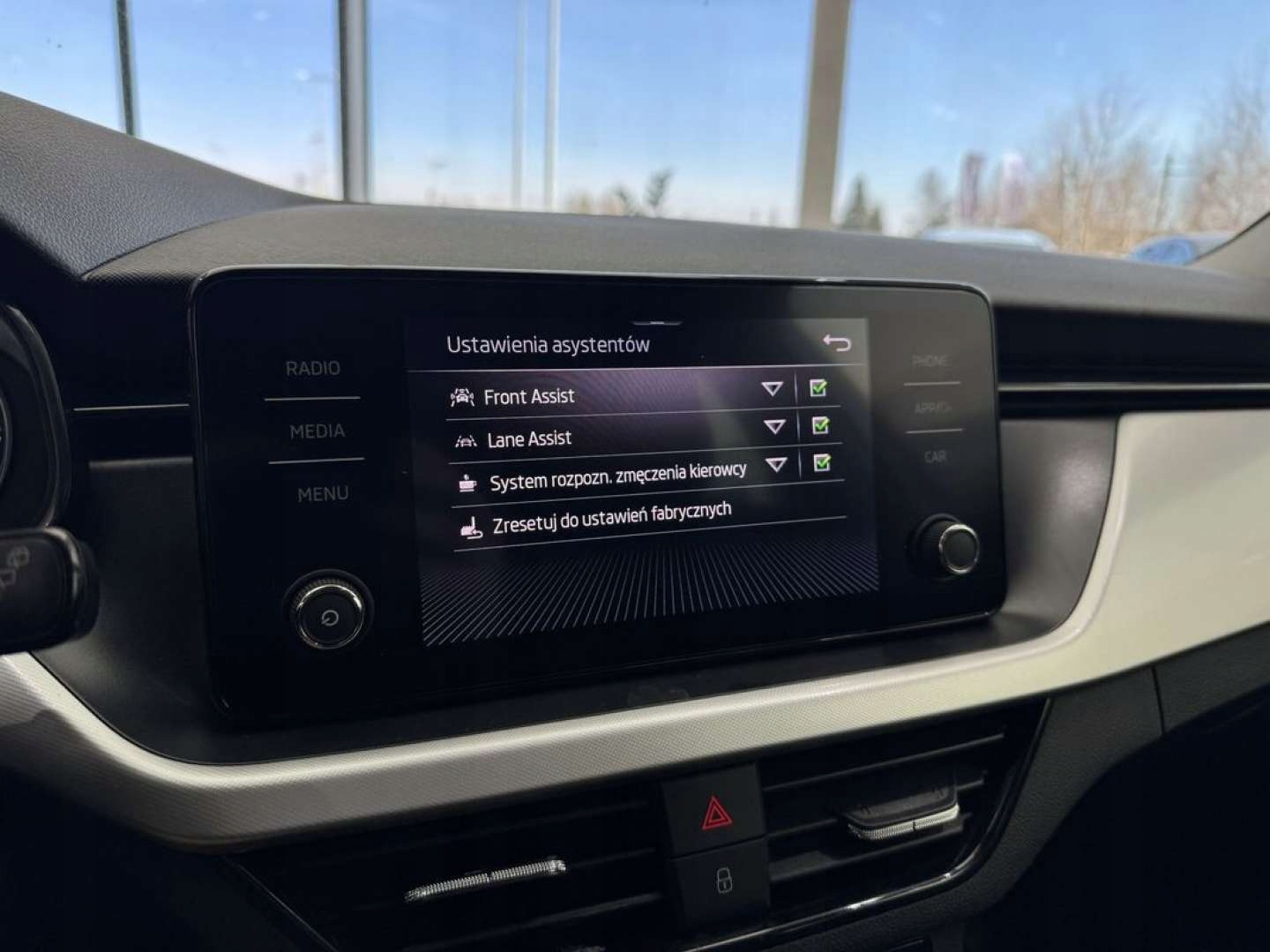 ABS, ASR (kontrola trakcji), Asystent pasa ruchu, Czujniki parkowania przednie, Czujniki parkowania tylne, Czujnik zmierzchu, ESP (stabilizacja toru jazdy), Isofix, Kamera cofania, Kurtyny powietrzne, Poduszka powietrzna kierowcy, Poduszka powietrzna pasażera, Poduszki boczne przednie, Elektryczne szyby przednie, Elektrycznie ustawiane lusterka, Podgrzewane lusterka boczne, Tapicerka tekstylna, Wielofunkcyjna kierownica, Wspomaganie kierownicy, Skórzana kierownica, Bluetooth, Gniazdo USB, Radio fabryczne, Alufelgi, Elektrochromatyczne lusterka boczne, Tempomat