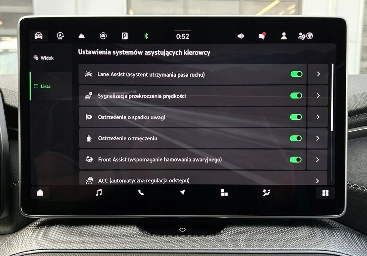 ABS, ASR (kontrola trakcji), Czujnik deszczu, Czujniki parkowania tylne, ESP (stabilizacja toru jazdy), Isofix, Kamera cofania, Kurtyny powietrzne, Poduszka powietrzna kierowcy, Poduszka powietrzna pasażera, Poduszki boczne przednie, Poduszki boczne tylne, Elektryczne szyby przednie, Elektryczne szyby tylne, Podgrzewana kierownica, Podgrzewana przednia szyba, Przyciemniane szyby, Wielofunkcyjna kierownica, Skórzana kierownica, Bluetooth, Gniazdo USB, Nawigacja GPS, Radio fabryczne, Alufelgi, Bezkluczykowy dostęp, Łopatki zmiany biegów, System Start-Stop, Tempomat aktywny