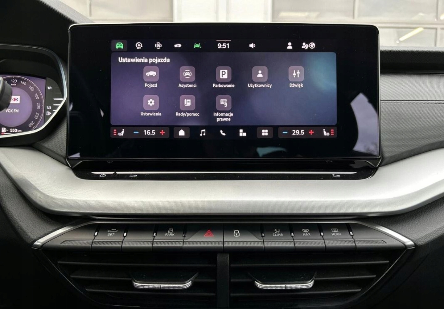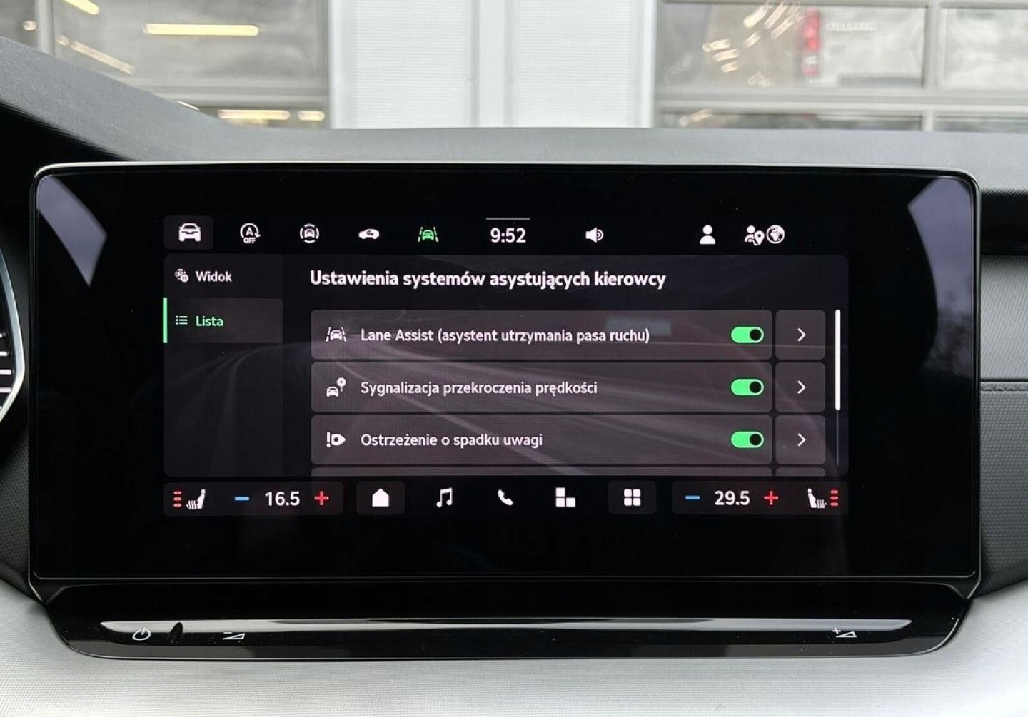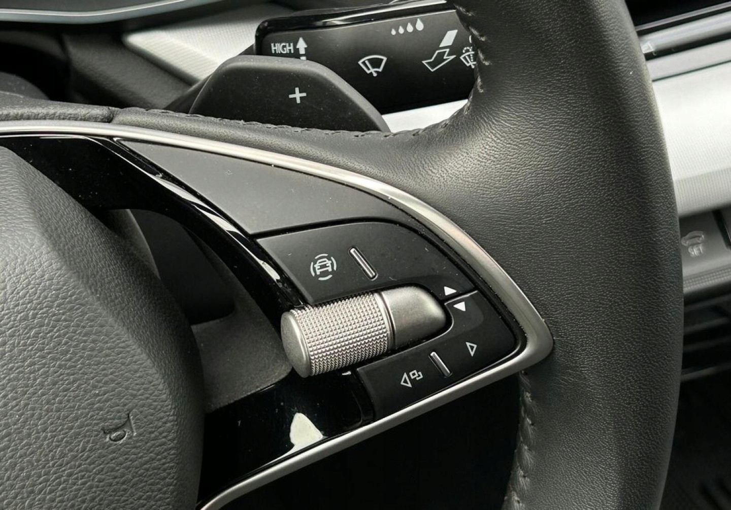 ABS, Asystent pasa ruchu, Czujniki parkowania przednie, Czujniki parkowania tylne, Czujnik martwego pola, Czujnik zmierzchu, Isofix, Kamera cofania, Poduszka powietrzna kierowcy, Poduszka powietrzna pasażera, Poduszki boczne przednie, Poduszki boczne tylne, Elektryczne szyby przednie, Elektryczne szyby tylne, Elektrycznie ustawiane lusterka, Podgrzewane lusterka boczne, Podgrzewane przednie siedzenia, Podgrzewane tylne siedzenia, Przyciemniane szyby, Tapicerka tekstylna, Wielofunkcyjna kierownica, Wspomaganie kierownicy, Skórzana kierownica, Bluetooth, Gniazdo USB, Radio fabryczne, Alufelgi, Bezkluczykowy dostęp, Elektrochromatyczne lusterka boczne, Łopatki zmiany biegów, Ogranicznik prędkości