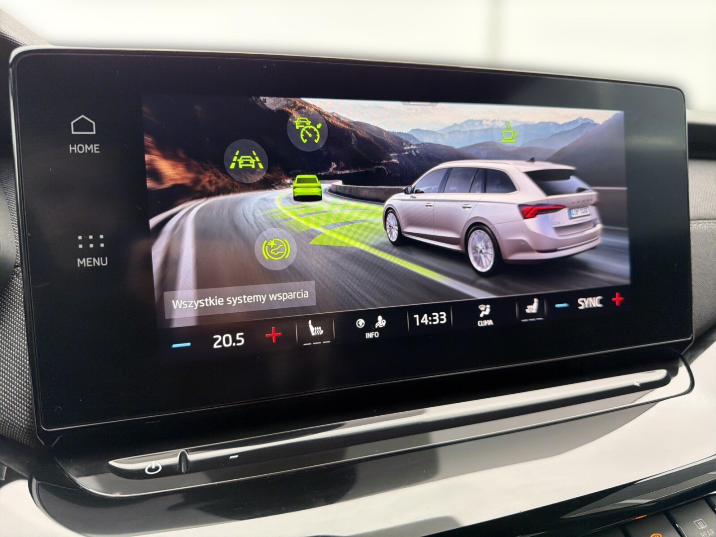 ABS, Asystent pasa ruchu, Poduszki boczne przednie, Poduszki boczne tylne, Czujnik deszczu, ESP (stabilizacja toru jazdy), Isofix, Kamera cofania, Czujniki parkowania tylne, Poduszka powietrzna chroniąca kolana, Poduszka powietrzna kierowcy, Wspomaganie kierownicy, Bluetooth, Gniazdo USB, Alufelgi