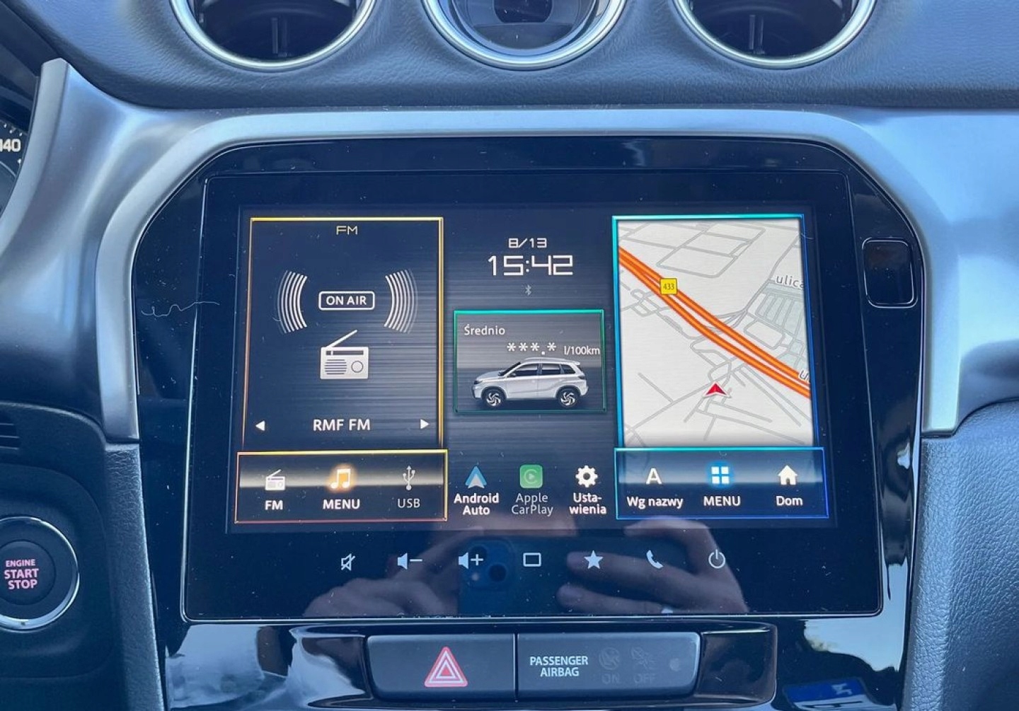 ABS, Czujnik deszczu, Czujniki parkowania tylne, Czujnik zmierzchu, ESP (stabilizacja toru jazdy), Isofix, Kamera cofania, Kurtyny powietrzne, Poduszka powietrzna kierowcy, Poduszka powietrzna pasażera, Poduszki boczne przednie, Elektryczne szyby przednie, Elektryczne szyby tylne, Elektrycznie ustawiane lusterka, Podgrzewane lusterka boczne, Tapicerka tekstylna, Wielofunkcyjna kierownica, Wspomaganie kierownicy, Nawigacja GPS, Radio fabryczne, Bezkluczykowy dostęp, Elektrochromatyczne lusterka boczne, Ogranicznik prędkości, Tempomat aktywny