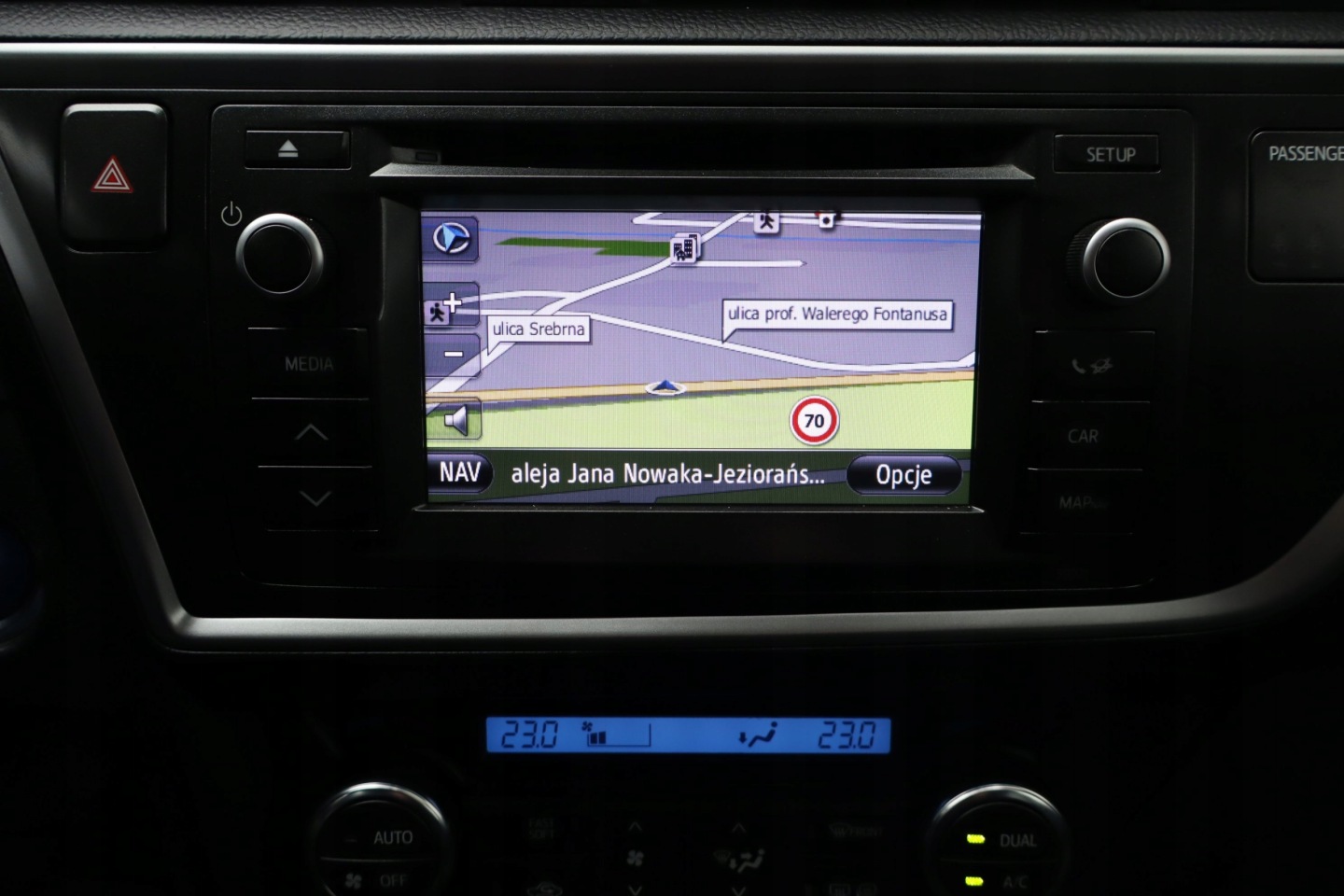 Kamera cofania, Poduszka powietrzna chroniąca kolana, ASR (kontrola trakcji), ABS, Kurtyny powietrzne, Poduszki boczne przednie, ESP (stabilizacja toru jazdy), Isofix, Czujnik deszczu, Poduszka powietrzna kierowcy, Poduszka powietrzna pasażera, Przyciemniane szyby, Podgrzewane przednie siedzenia, Wielofunkcyjna kierownica, Wspomaganie kierownicy, Elektrycznie ustawiane lusterka, Elektryczne szyby tylne, Elektryczne szyby przednie, CD, Bluetooth, MP3, Gniazdo SD, Nawigacja GPS, Gniazdo USB, Ogranicznik prędkości, Tempomat, Komputer pokładowy, Otwieranie pilotem