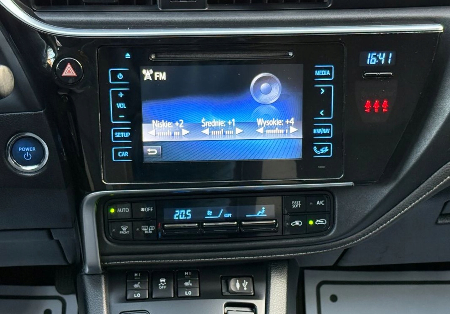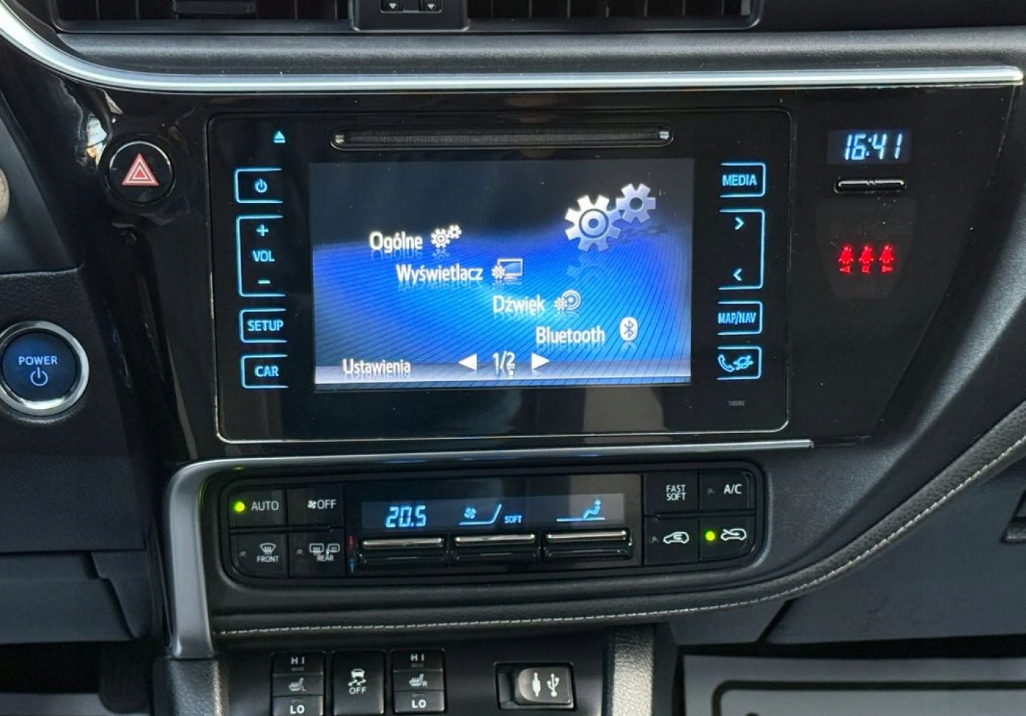 ABS, ASR (kontrola trakcji), ESP (stabilizacja toru jazdy), Isofix, Kamera cofania, Kurtyny powietrzne, Poduszka powietrzna chroniąca kolana, Poduszka powietrzna kierowcy, Poduszka powietrzna pasażera, Poduszki boczne przednie, Elektryczne szyby przednie, Elektryczne szyby tylne, Elektrycznie ustawiane lusterka, Podgrzewane lusterka boczne, Podgrzewane przednie siedzenia, Podgrzewane tylne siedzenia, Tapicerka tekstylna, Wielofunkcyjna kierownica, Wspomaganie kierownicy, Skórzana kierownica, Bluetooth, Gniazdo USB, Radio fabryczne, Alufelgi, Elektrochromatyczne lusterka boczne, Tempomat
