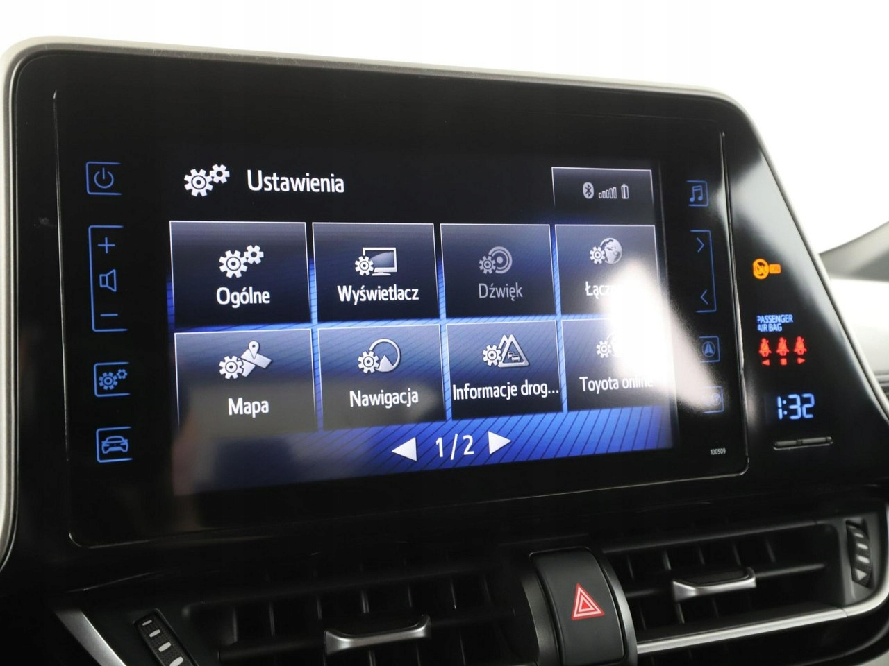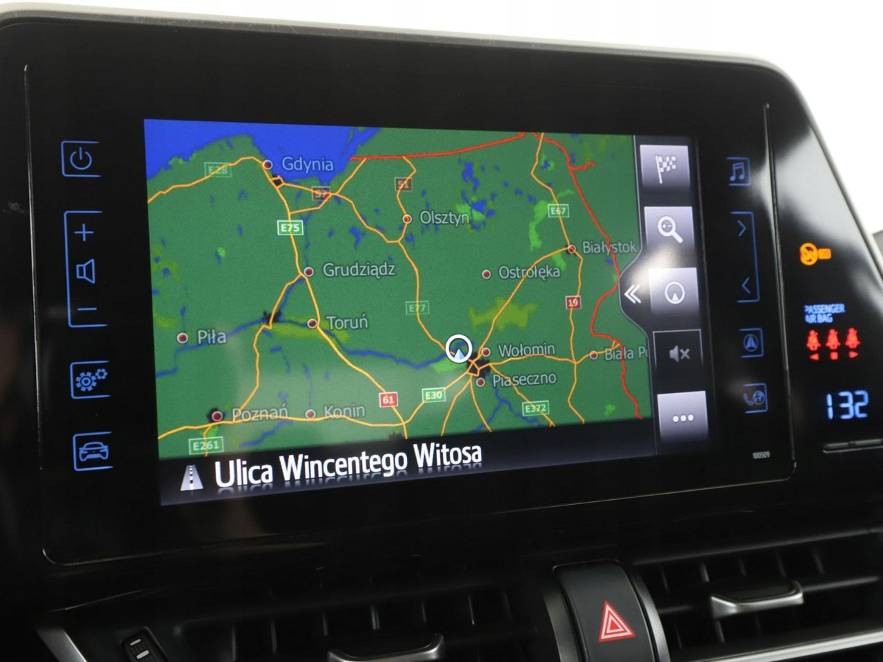 ABS, ASR (kontrola trakcji), Czujnik deszczu, Czujniki parkowania tylne, Immobilizer, Asystent pasa ruchu, Poduszka powietrzna kierowcy, Poduszka powietrzna pasażera, Poduszki boczne przednie, ESP (stabilizacja toru jazdy), Isofix, Kamera cofania, Elektryczne szyby przednie, Elektryczne szyby tylne, Elektrycznie ustawiane lusterka, Podgrzewane przednie siedzenia, Przyciemniane szyby, Wielofunkcyjna kierownica, Wspomaganie kierownicy, Tapicerka tekstylna, Nawigacja GPS, Centralny zamek, Komputer pokładowy, Tempomat, Tempomat aktywny