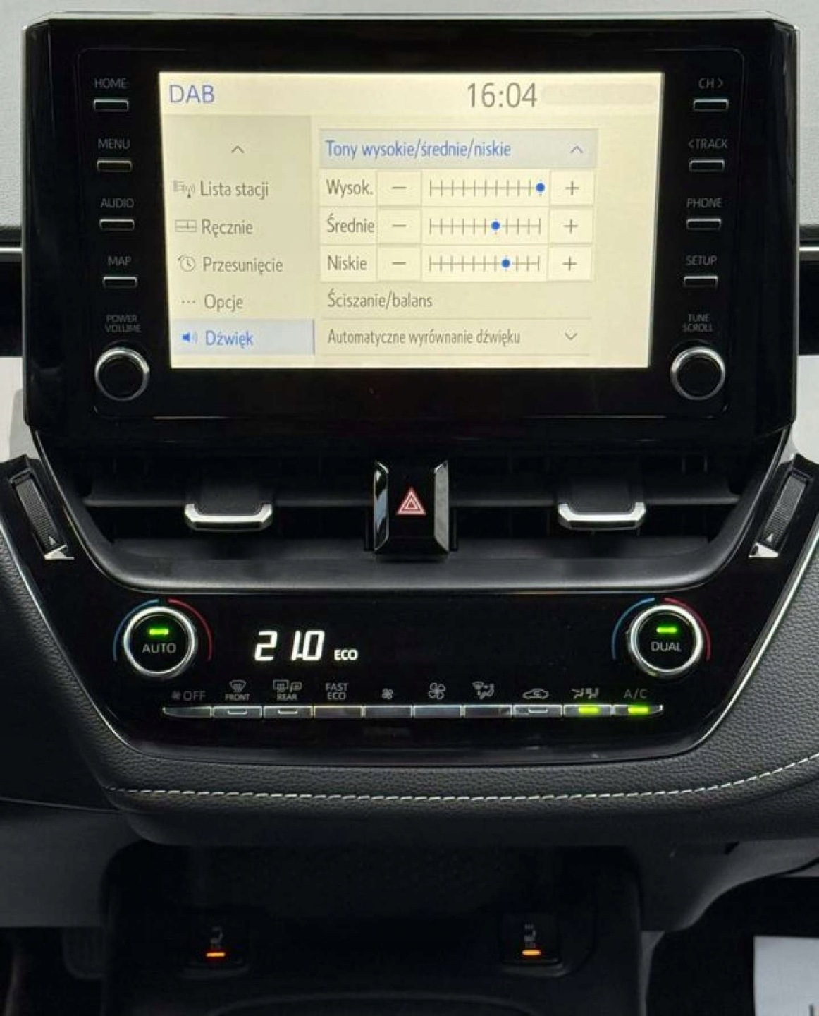 ABS, ASR (kontrola trakcji), Czujnik zmierzchu, ESP (stabilizacja toru jazdy), Isofix, Kamera cofania, Kurtyny powietrzne, Poduszka powietrzna chroniąca kolana, Poduszka powietrzna kierowcy, Poduszka powietrzna pasażera, Poduszki boczne przednie, Elektryczne szyby przednie, Elektryczne szyby tylne, Elektrycznie ustawiane lusterka, Podgrzewane lusterka boczne, Tapicerka tekstylna, Wielofunkcyjna kierownica, Wspomaganie kierownicy, Skórzana kierownica, Bluetooth, Gniazdo USB, Radio fabryczne, Alufelgi, Elektrochromatyczne lusterka boczne, Łopatki zmiany biegów, Tempomat aktywny