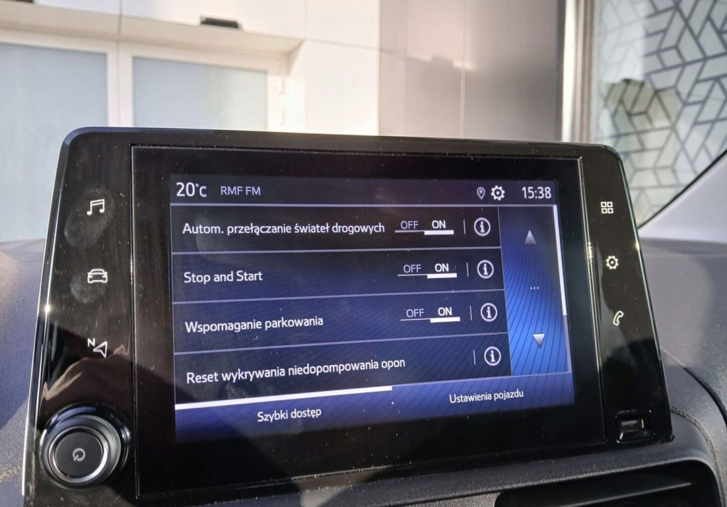 ABS, ASR (kontrola trakcji), Czujnik deszczu, Czujniki parkowania przednie, Czujniki parkowania tylne, Czujnik zmierzchu, ESP (stabilizacja toru jazdy), Isofix, Kamera cofania, Kurtyny powietrzne, Poduszka powietrzna kierowcy, Poduszka powietrzna pasażera, Poduszki boczne przednie, Elektryczne szyby przednie, Elektryczne szyby tylne, Elektrycznie ustawiane lusterka, Podgrzewane przednie siedzenia, Przyciemniane szyby, Tapicerka tekstylna, Wielofunkcyjna kierownica, Wspomaganie kierownicy, Skórzana kierownica, Bluetooth, Gniazdo USB, Alufelgi, Elektrochromatyczne lusterka boczne, Łopatki zmiany biegów, Tempomat