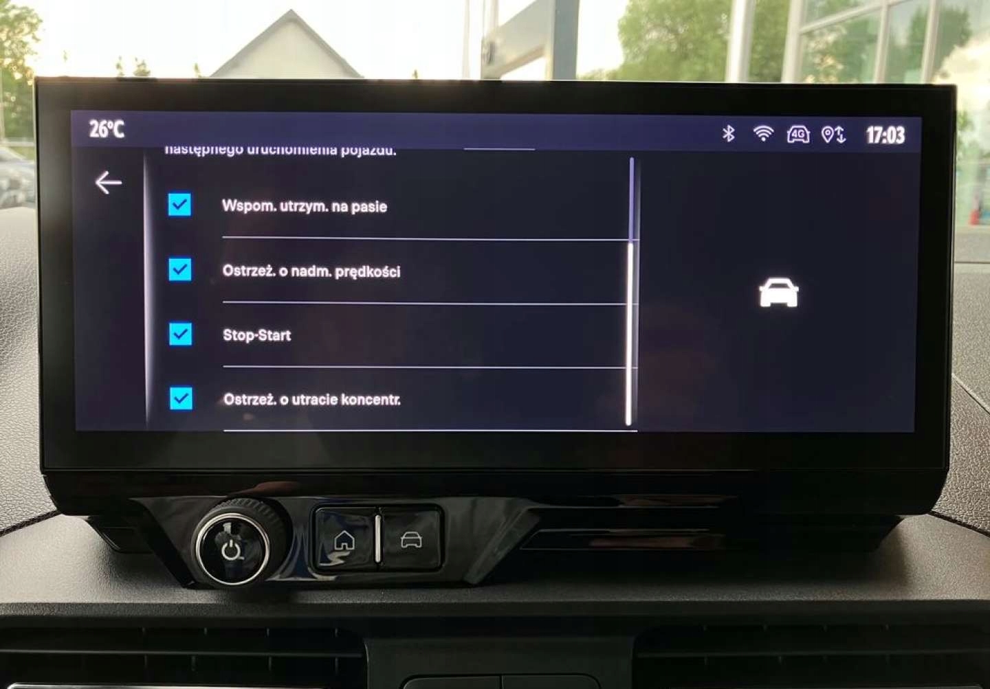 ABS, Czujnik deszczu, Czujnik zmierzchu, ESP (stabilizacja toru jazdy), Isofix, Kamera cofania, Kurtyny powietrzne, Poduszka powietrzna pasażera, Poduszki boczne przednie, Elektryczne szyby przednie, Elektryczne szyby tylne, Elektrycznie ustawiane lusterka, Podgrzewana kierownica, Podgrzewane lusterka boczne, Podgrzewane przednie siedzenia, Przyciemniane szyby, Tapicerka tekstylna, Wielofunkcyjna kierownica, Skórzana kierownica, Bluetooth, Gniazdo USB, Nawigacja GPS, Radio fabryczne, Alufelgi, Elektrochromatyczne lusterka boczne, Tempomat
