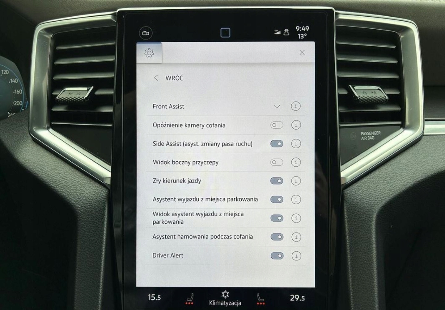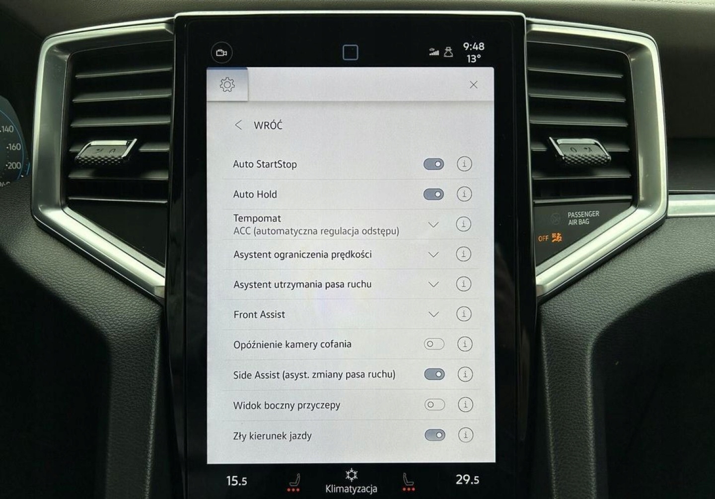 ABS, ASR (kontrola trakcji), Asystent pasa ruchu, Czujnik deszczu, Czujniki parkowania przednie, Czujniki parkowania tylne, ESP (stabilizacja toru jazdy), Isofix, Kamera cofania, Poduszka powietrzna chroniąca kolana, Poduszka powietrzna kierowcy, Poduszka powietrzna pasażera, Poduszki boczne przednie, Poduszki boczne tylne, Elektryczne szyby przednie, Elektryczne szyby tylne, Elektrycznie ustawiane fotele, Elektrycznie ustawiane lusterka, Podgrzewane lusterka boczne, Podgrzewane przednie siedzenia, Podgrzewane tylne siedzenia, Przyciemniane szyby, Wielofunkcyjna kierownica, Wspomaganie kierownicy, Skórzana kierownica, Bluetooth, Gniazdo USB, Nawigacja GPS, Radio fabryczne, Alufelgi, Bezkluczykowy dostęp, Elektrochromatyczne lusterka boczne, Ogranicznik prędkości, System Start-Stop