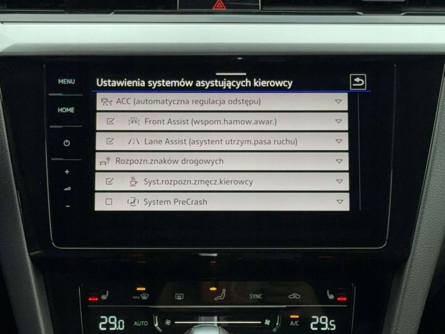 ABS, ASR (kontrola trakcji), Czujnik deszczu, Czujniki parkowania przednie, Czujniki parkowania tylne, Czujnik zmierzchu, ESP (stabilizacja toru jazdy), Isofix, Kamera cofania, Kurtyny powietrzne, Poduszka powietrzna chroniąca kolana, Elektryczne szyby przednie, Elektryczne szyby tylne, Elektrycznie ustawiane lusterka, Podgrzewana kierownica, Podgrzewana przednia szyba, Podgrzewane lusterka boczne, Podgrzewane przednie siedzenia, Podgrzewane tylne siedzenia, Przyciemniane szyby, Wielofunkcyjna kierownica, Wspomaganie kierownicy, Skórzana kierownica, Bluetooth, Gniazdo USB, Nawigacja GPS, Radio fabryczne, Bezkluczykowy dostęp, Elektrochromatyczne lusterka boczne, Łopatki zmiany biegów, Ogranicznik prędkości, System Start-Stop, Tempomat aktywny
