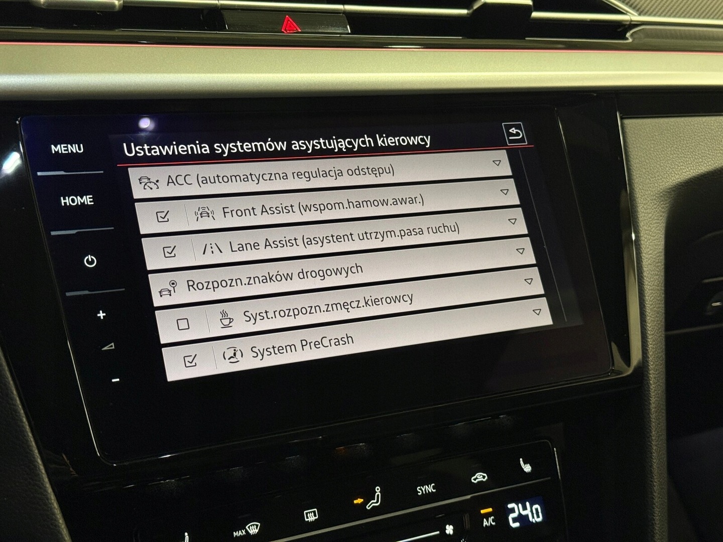 ABS, Asystent pasa ruchu, Poduszki boczne przednie, Poduszki boczne tylne, Czujnik deszczu, ESP (stabilizacja toru jazdy), Isofix, Poduszka powietrzna chroniąca kolana, Poduszka powietrzna kierowcy, Czujnik zmierzchu, Kamera cofania, Przyciemniane szyby, Wspomaganie kierownicy, Elektryczne szyby przednie, Elektryczne szyby tylne, Podgrzewane tylne siedzenia, Podgrzewana przednia szyba, Podgrzewane przednie siedzenia, Bluetooth, Gniazdo USB, Radio niefabryczne, Alufelgi, Ogranicznik prędkości, System Start-Stop, Tempomat, Tempomat aktywny, Łopatki zmiany biegów