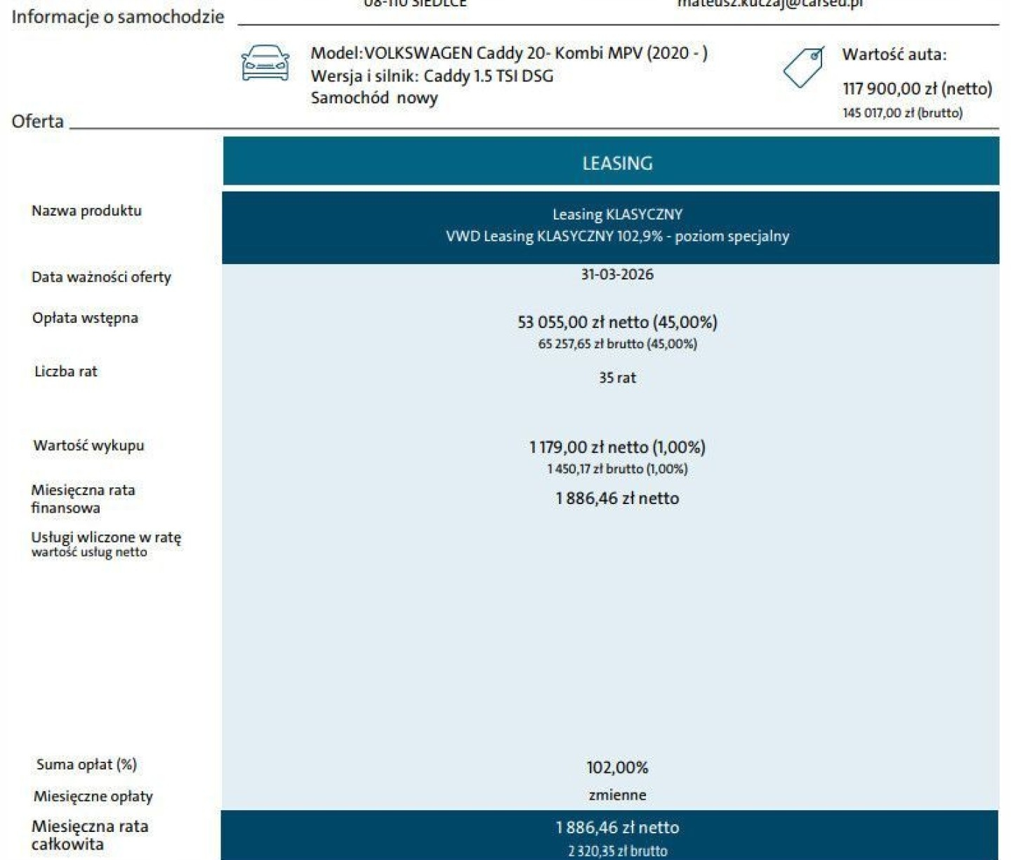 Sprawdź najnowsze oferty Volkswagen Caddy