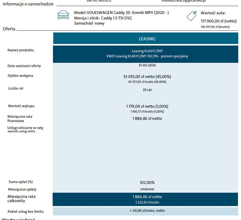 Sprawdź najnowsze oferty Volkswagen Caddy