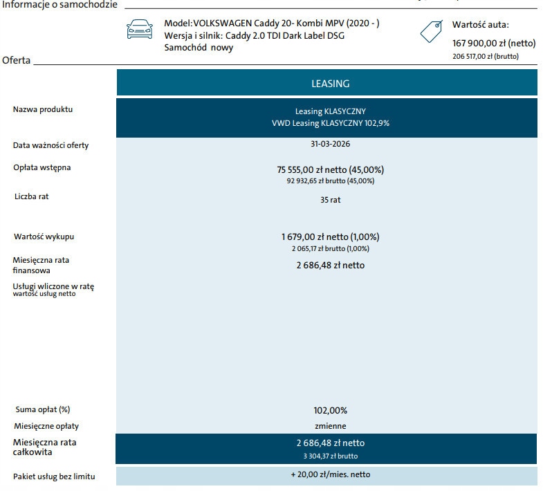 Sprawdź najnowsze oferty Volkswagen Caddy