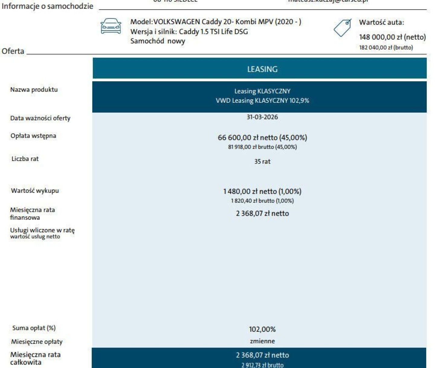 Sprawdź najnowsze oferty Volkswagen Caddy