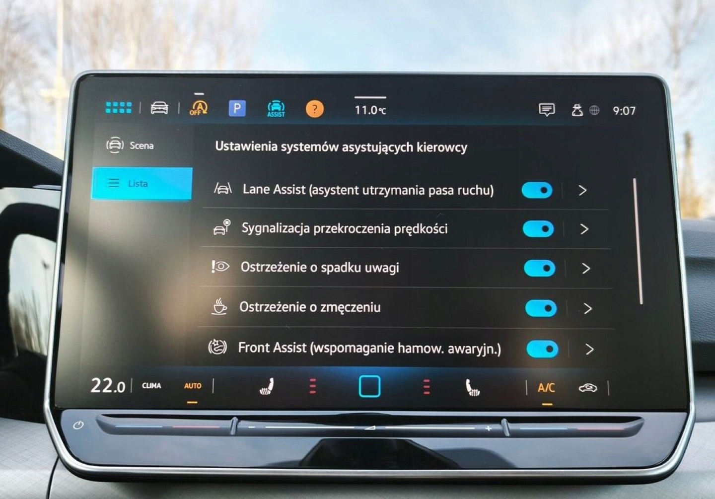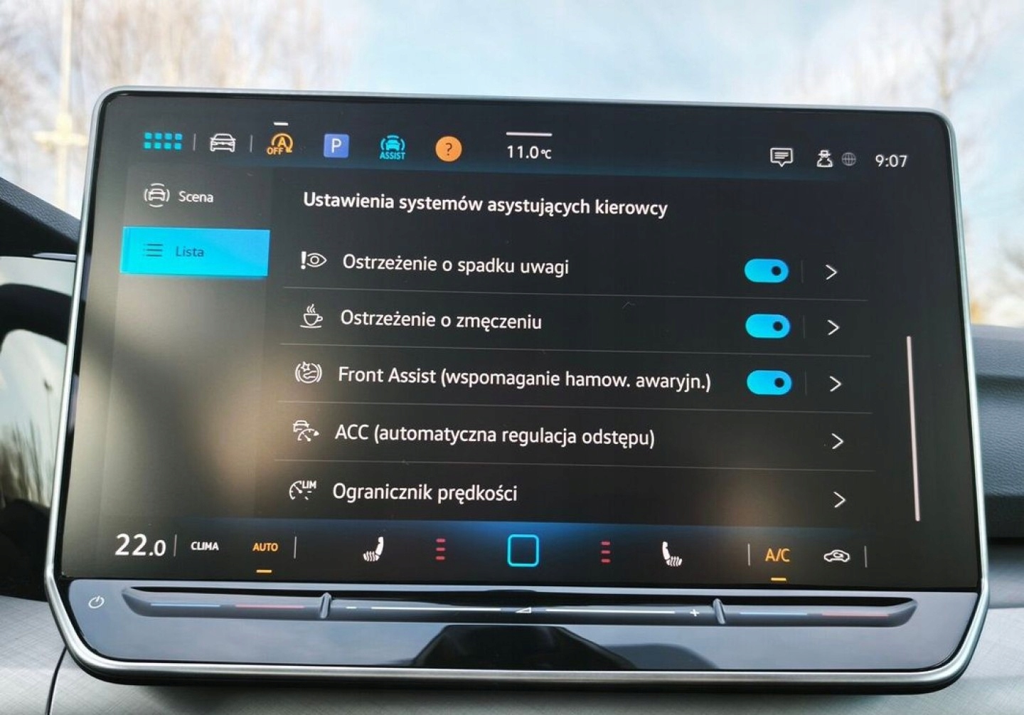 ABS, ASR (kontrola trakcji), Asystent pasa ruchu, Czujnik deszczu, Czujniki parkowania przednie, Czujniki parkowania tylne, ESP (stabilizacja toru jazdy), Isofix, Kamera cofania, Kurtyny powietrzne, Poduszka powietrzna kierowcy, Poduszka powietrzna pasażera, Poduszki boczne przednie, Poduszki boczne tylne, Elektryczne szyby przednie, Elektryczne szyby tylne, Elektrycznie ustawiane lusterka, Podgrzewana kierownica, Podgrzewane lusterka boczne, Podgrzewane przednie siedzenia, Podgrzewane tylne siedzenia, Przyciemniane szyby, Tapicerka tekstylna, Wielofunkcyjna kierownica, Wspomaganie kierownicy, Skórzana kierownica, Bluetooth, Gniazdo USB, Radio fabryczne, Alufelgi, Bezkluczykowy dostęp, Elektrochromatyczne lusterka boczne, Ogranicznik prędkości, System Start-Stop, Tempomat aktywny