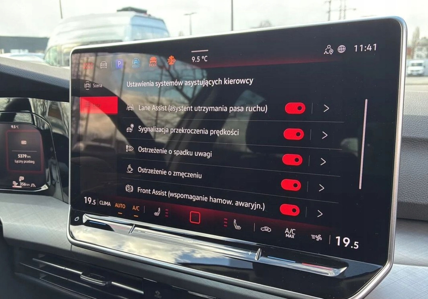 ABS, ASR (kontrola trakcji), Asystent parkowania, Czujnik deszczu, Czujniki parkowania przednie, Czujniki parkowania tylne, ESP (stabilizacja toru jazdy), Isofix, Kurtyny powietrzne, Poduszka powietrzna kierowcy, Poduszka powietrzna pasażera, Poduszki boczne przednie, Elektryczne szyby przednie, Elektryczne szyby tylne, Elektrycznie ustawiane lusterka, Podgrzewane lusterka boczne, Tapicerka tekstylna, Wielofunkcyjna kierownica, Wspomaganie kierownicy, Skórzana kierownica, Bluetooth, Gniazdo USB, Radio fabryczne, Elektrochromatyczne lusterka boczne, Łopatki zmiany biegów, System Start-Stop, Tempomat aktywny