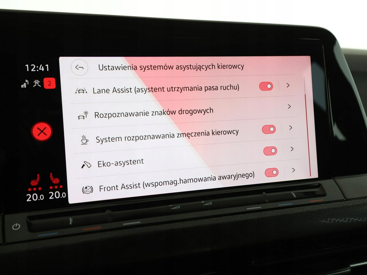 ABS, ASR (kontrola trakcji), Czujniki parkowania tylne, Immobilizer, Asystent pasa ruchu, Czujniki parkowania przednie, Poduszka powietrzna kierowcy, Poduszka powietrzna pasażera, Poduszki boczne przednie, ESP (stabilizacja toru jazdy), Isofix, Elektryczne szyby przednie, Elektryczne szyby tylne, Elektrycznie ustawiane lusterka, Podgrzewane przednie siedzenia, Wielofunkcyjna kierownica, Wspomaganie kierownicy, Podgrzewane lusterka boczne, Tapicerka tekstylna, Gniazdo USB, Nawigacja GPS, Bezkluczykowy dostęp, Centralny zamek, Komputer pokładowy, Tempomat, Ogranicznik prędkości, System Start-Stop, Hak, Łopatki zmiany biegów, Tempomat aktywny