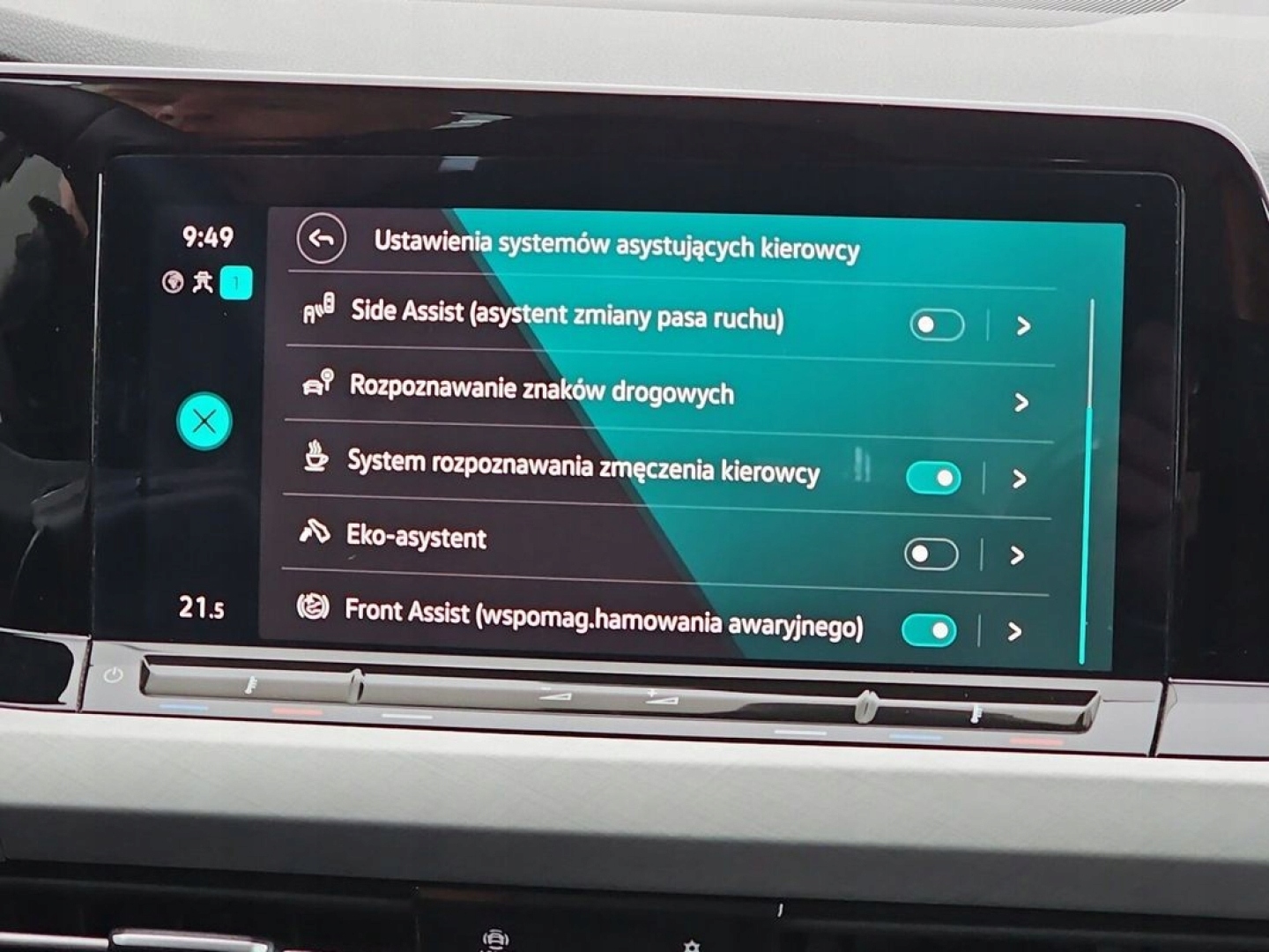 ABS, ASR (kontrola trakcji), Czujnik deszczu, Czujniki parkowania przednie, Czujniki parkowania tylne, Czujnik martwego pola, ESP (stabilizacja toru jazdy), Isofix, Kurtyny powietrzne, Poduszki boczne tylne, Elektryczne szyby przednie, Elektryczne szyby tylne, Elektrycznie ustawiane lusterka, Podgrzewane lusterka boczne, Tapicerka tekstylna, Wielofunkcyjna kierownica, Wspomaganie kierownicy, Skórzana kierownica, Bluetooth, Gniazdo USB, Nawigacja GPS, Radio fabryczne, Elektrochromatyczne lusterka boczne, Tempomat aktywny