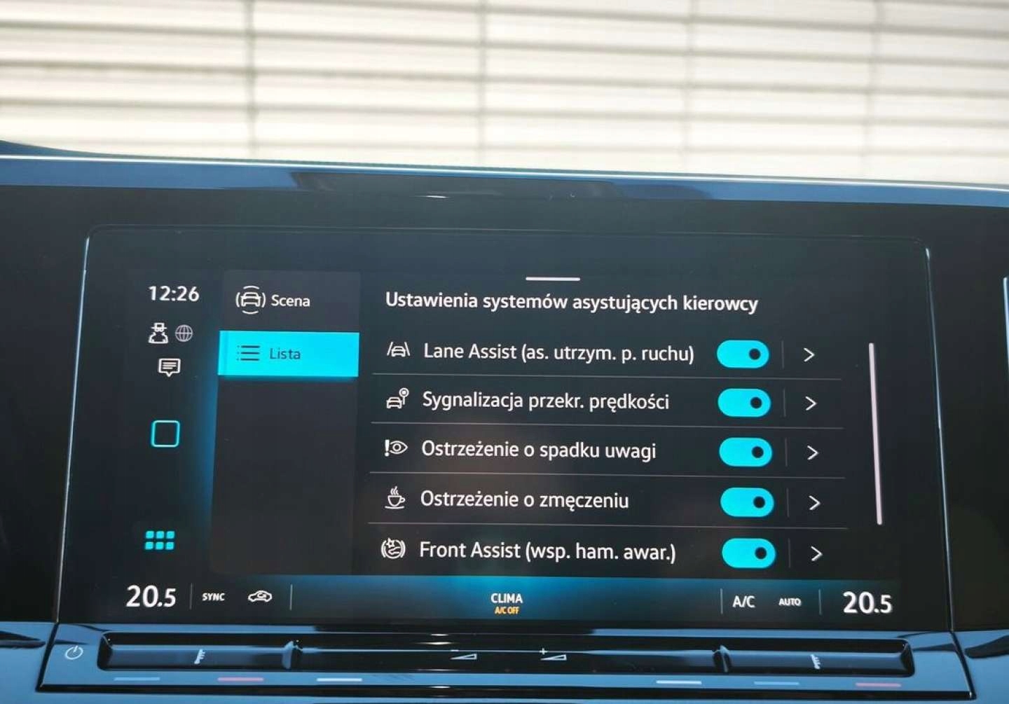 ABS, Asystent pasa ruchu, Czujnik deszczu, Czujniki parkowania tylne, ESP (stabilizacja toru jazdy), Poduszka powietrzna kierowcy, Poduszka powietrzna pasażera, Poduszki boczne przednie, Poduszki boczne tylne, Elektryczne szyby przednie, Ogrzewanie postojowe, Podgrzewana przednia szyba, Podgrzewane lusterka boczne, Przyciemniane szyby, Skórzana kierownica, Bluetooth, Gniazdo USB, Radio fabryczne, Alufelgi, Łopatki zmiany biegów, Tempomat