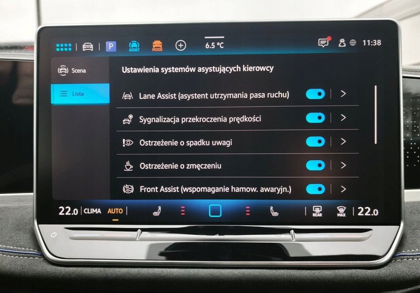 ABS, ASR (kontrola trakcji), Asystent parkowania, Asystent pasa ruchu, Czujnik deszczu, Czujniki parkowania przednie, Czujniki parkowania tylne, ESP (stabilizacja toru jazdy), Isofix, Kamera cofania, Kurtyny powietrzne, Poduszka powietrzna chroniąca kolana, Poduszka powietrzna kierowcy, Poduszka powietrzna pasażera, Poduszki boczne przednie, Poduszki boczne tylne, Elektryczne szyby przednie, Elektryczne szyby tylne, Elektrycznie ustawiane lusterka, Podgrzewana kierownica, Podgrzewane lusterka boczne, Podgrzewane przednie siedzenia, Przyciemniane szyby, Tapicerka tekstylna, Wielofunkcyjna kierownica, Wspomaganie kierownicy, Skórzana kierownica, Bluetooth, Gniazdo USB, Nawigacja GPS, Radio fabryczne, Alufelgi, Bezkluczykowy dostęp, Elektrochromatyczne lusterka boczne, Łopatki zmiany biegów, System Start-Stop, Szyberdach, Tempomat aktywny