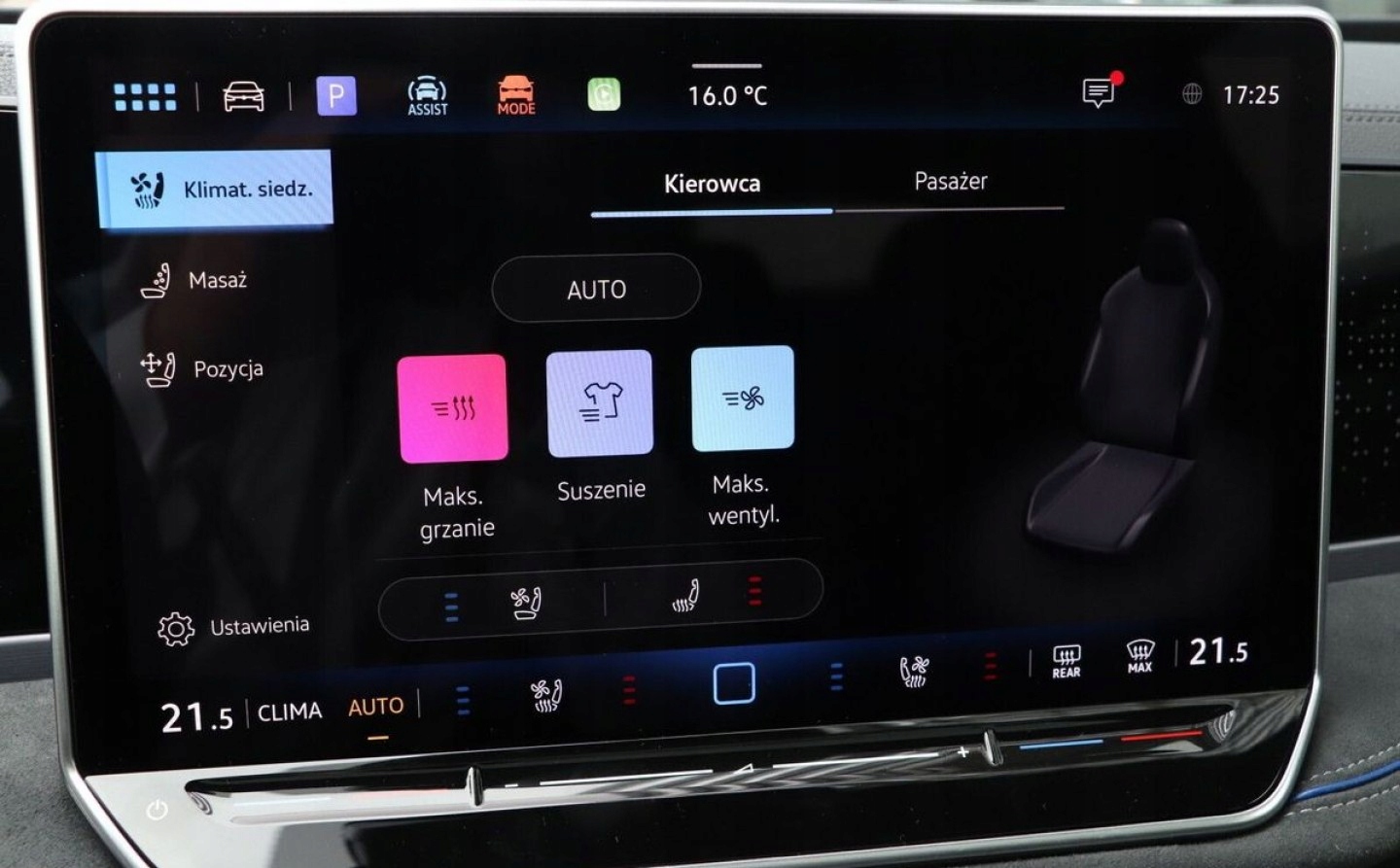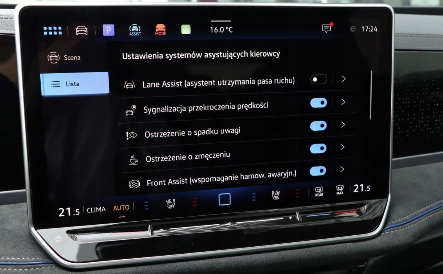 Asystent pasa ruchu, Czujnik deszczu, Czujniki parkowania przednie, Czujniki parkowania tylne, Czujnik zmierzchu, Isofix, Kamera cofania, Poduszka powietrzna chroniąca kolana, Poduszka powietrzna kierowcy, Poduszka powietrzna pasażera, Poduszki boczne przednie, Poduszki boczne tylne, Elektryczne szyby przednie, Elektryczne szyby tylne, Elektrycznie ustawiane lusterka, Podgrzewane lusterka boczne, Podgrzewane przednie siedzenia, Tapicerka alcantara, Wielofunkcyjna kierownica, Wspomaganie kierownicy, Bluetooth, Gniazdo USB, Nawigacja GPS, Elektrochromatyczne lusterka boczne, System Start-Stop, Tempomat aktywny