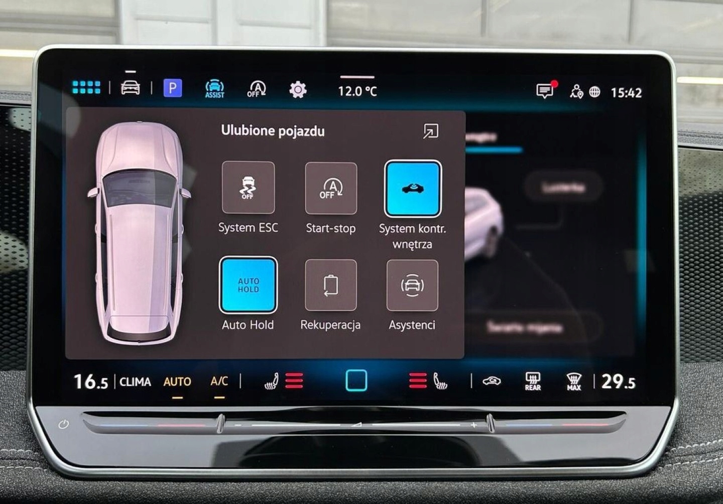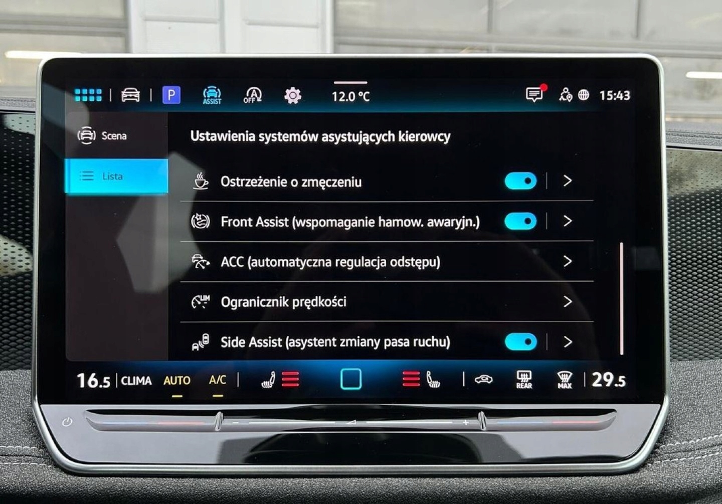 ABS, Asystent parkowania, Asystent pasa ruchu, Czujnik deszczu, Czujniki parkowania tylne, Czujnik zmierzchu, ESP (stabilizacja toru jazdy), Isofix, Kamera cofania, Kurtyny powietrzne, Poduszka powietrzna chroniąca kolana, Poduszka powietrzna kierowcy, Poduszka powietrzna pasażera, Poduszki boczne przednie, Poduszki boczne tylne, Elektryczne szyby przednie, Elektryczne szyby tylne, Elektrycznie ustawiane lusterka, Podgrzewana kierownica, Podgrzewane lusterka boczne, Podgrzewane przednie siedzenia, Podgrzewane tylne siedzenia, Przyciemniane szyby, Tapicerka tekstylna, Wielofunkcyjna kierownica, Wspomaganie kierownicy, Skórzana kierownica, Bluetooth, Gniazdo USB, Nawigacja GPS, Radio fabryczne, Alufelgi, Bezkluczykowy dostęp, Elektrochromatyczne lusterka boczne, Łopatki zmiany biegów, System Start-Stop, Tempomat aktywny