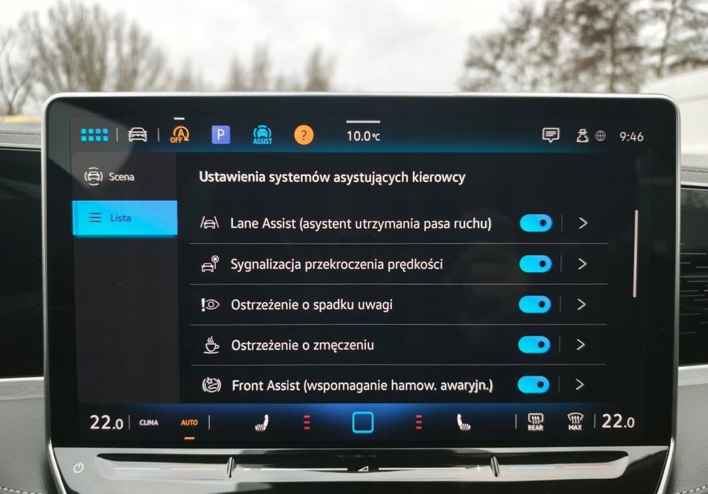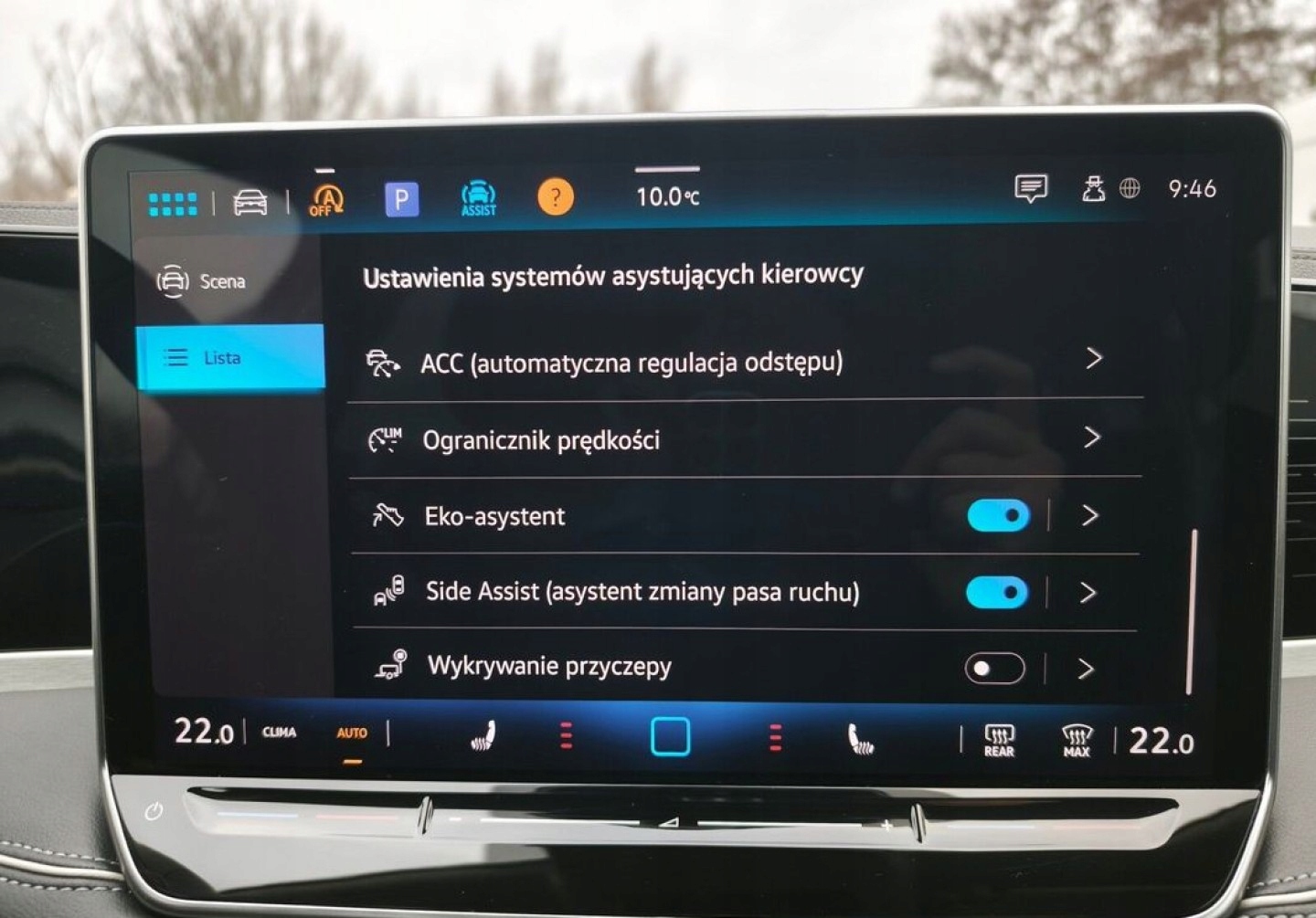 ABS, ASR (kontrola trakcji), Asystent parkowania, Asystent pasa ruchu, Czujnik deszczu, Czujniki parkowania tylne, ESP (stabilizacja toru jazdy), Isofix, Kamera cofania, Kurtyny powietrzne, Poduszka powietrzna chroniąca kolana, Poduszka powietrzna kierowcy, Poduszka powietrzna pasażera, Poduszki boczne przednie, Poduszki boczne tylne, Elektryczne szyby przednie, Elektryczne szyby tylne, Elektrycznie ustawiane lusterka, Podgrzewane lusterka boczne, Podgrzewane przednie siedzenia, Przyciemniane szyby, Wentylowane fotele, Skórzana kierownica, Bluetooth, Gniazdo USB, Nawigacja GPS, Radio fabryczne, Alufelgi, Bezkluczykowy dostęp, Elektrochromatyczne lusterka boczne, Łopatki zmiany biegów, Ogranicznik prędkości, Tempomat aktywny