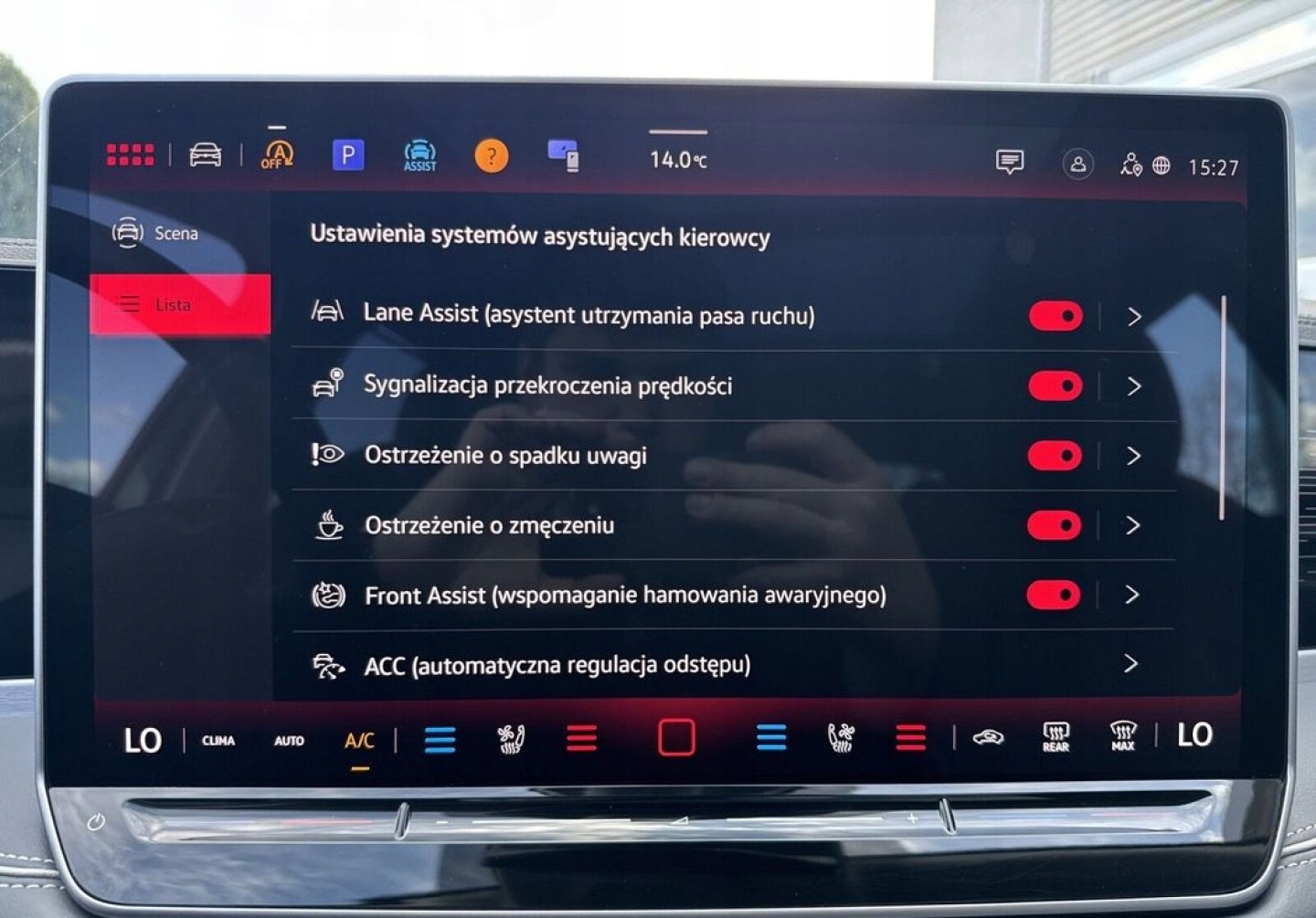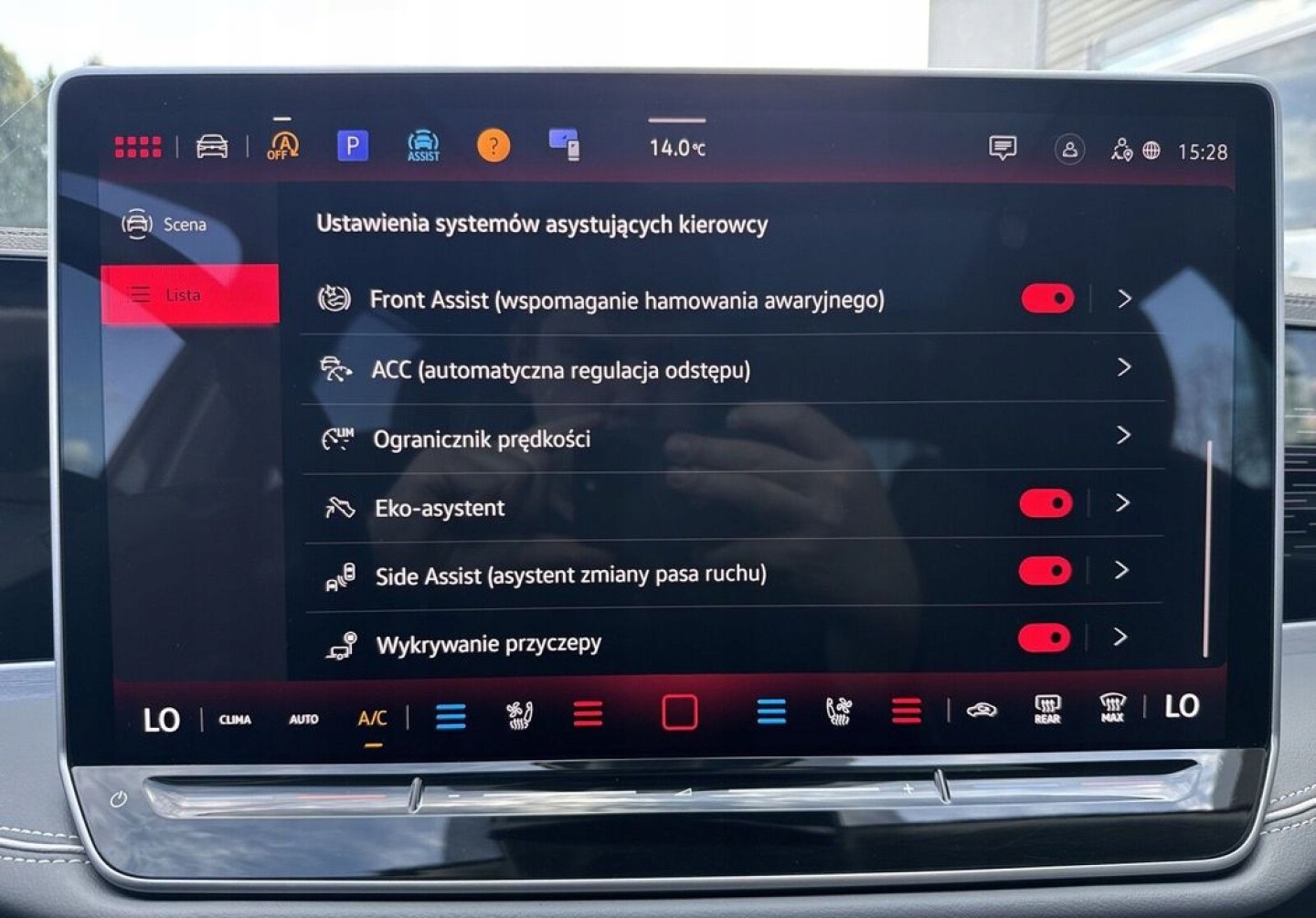 ABS, Alarm, ASR (kontrola trakcji), Asystent parkowania, Asystent pasa ruchu, Czujnik deszczu, Czujniki parkowania przednie, Czujniki parkowania tylne, Czujnik martwego pola, Czujnik zmierzchu, ESP (stabilizacja toru jazdy), HUD (wyświetlacz przezierny), Isofix, Kamera cofania, Kurtyny powietrzne, Poduszka powietrzna chroniąca kolana, Poduszka powietrzna kierowcy, Poduszka powietrzna pasażera, Poduszki boczne przednie, Poduszki boczne tylne, Elektryczne szyby przednie, Elektryczne szyby tylne, Elektrycznie ustawiane fotele, Elektrycznie ustawiane lusterka, Podgrzewana kierownica, Podgrzewane lusterka boczne, Podgrzewane przednie siedzenia, Podgrzewane tylne siedzenia, Przyciemniane szyby, Tapicerka skórzana, Wentylowane fotele, Wielofunkcyjna kierownica, Wspomaganie kierownicy, Skórzana kierownica, Bluetooth, Gniazdo USB, Nawigacja GPS, Radio fabryczne, Alufelgi, Bezkluczykowy dostęp, Elektrochromatyczne lusterka boczne, Łopatki zmiany biegów, Ogranicznik prędkości, System Start-Stop, Tempomat aktywny