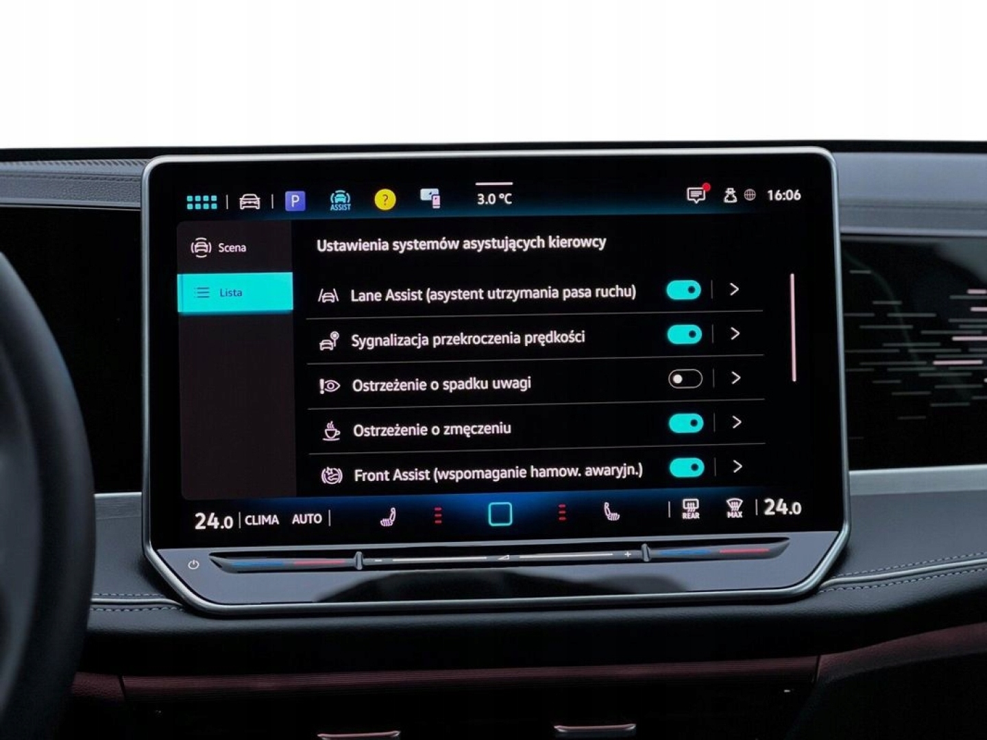 ABS, Asystent parkowania, Asystent pasa ruchu, Czujnik deszczu, Czujnik martwego pola, ESP (stabilizacja toru jazdy), Isofix, Kamera cofania, Kurtyny powietrzne, Poduszka powietrzna chroniąca kolana, Poduszka powietrzna kierowcy, Poduszka powietrzna pasażera, Poduszki boczne przednie, Poduszki boczne tylne, Elektryczne szyby przednie, Elektryczne szyby tylne, Elektrycznie ustawiane fotele, Elektrycznie ustawiane lusterka, Podgrzewana kierownica, Podgrzewane lusterka boczne, Podgrzewane przednie siedzenia, Podgrzewane tylne siedzenia, Przyciemniane szyby, Wielofunkcyjna kierownica, Wspomaganie kierownicy, Bluetooth, Gniazdo USB, Nawigacja GPS, Radio fabryczne, Alufelgi, Bezkluczykowy dostęp, Elektrochromatyczne lusterka boczne, Łopatki zmiany biegów, Ogranicznik prędkości, System Start-Stop