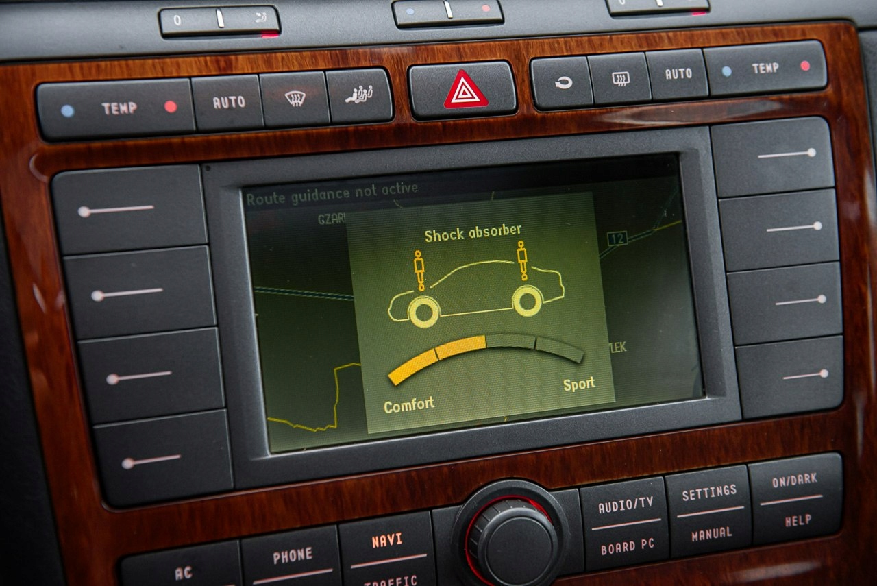 ABS, Alarm, ASR (kontrola trakcji), Czujnik deszczu, Czujniki parkowania tylne, Immobilizer, Czujniki parkowania przednie, Kurtyny powietrzne, Poduszki boczne przednie, Poduszka powietrzna kierowcy, Poduszka powietrzna pasażera, Poduszki boczne tylne, Światła xenonowe, ESP (stabilizacja toru jazdy), Isofix, Elektryczne szyby przednie, Elektryczne szyby tylne, Elektrycznie ustawiane lusterka, Podgrzewane przednie siedzenia, Wielofunkcyjna kierownica, Wspomaganie kierownicy, Elektrycznie ustawiane fotele, Podgrzewane lusterka boczne, Zawieszenie adaptacyjne, Tapicerka ciemna, Tapicerka skórzana, Bluetooth, CD, Zmieniarka CD, Radio fabryczne, Nawigacja GPS, Alufelgi, Centralny zamek, Komputer pokładowy, Szyberdach, Tempomat, Elektrochromatyczne lusterka boczne, Elektrochromatyczne lusterko wsteczne