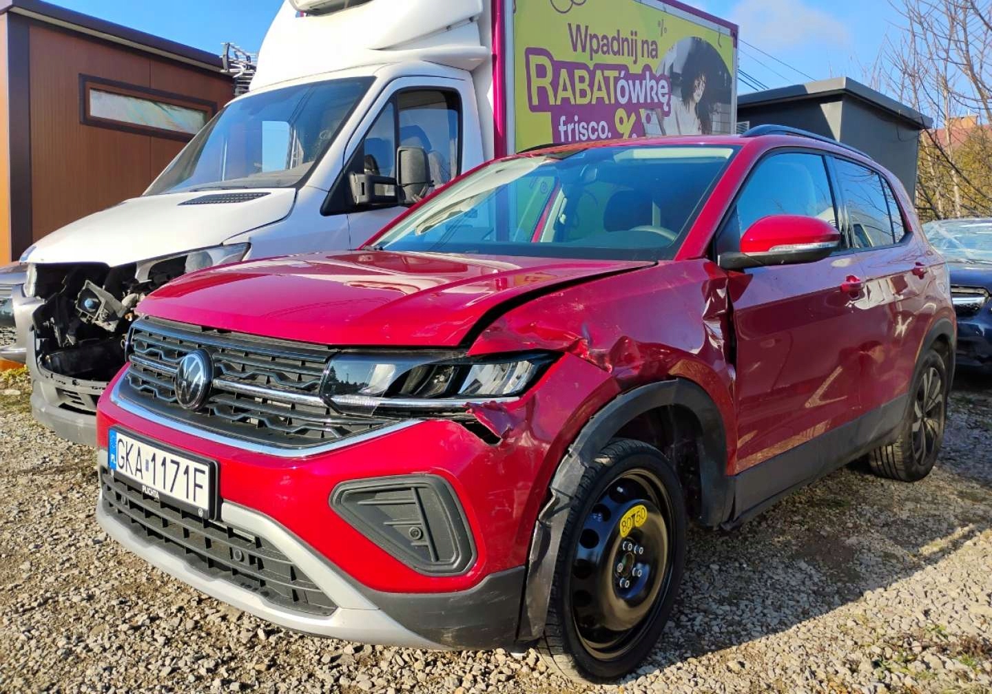 Volkswagen T-Cross 2025r, SALON POLSKA. 1.0 TSI AUTOMAT. Uszkodzony bok. P