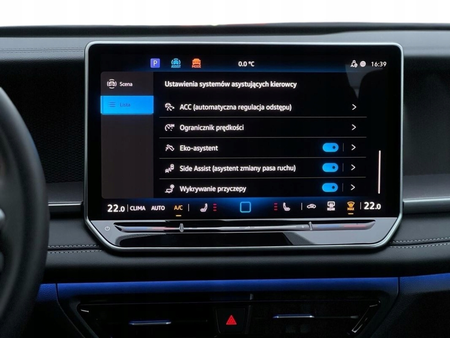 ABS, ASR (kontrola trakcji), Asystent parkowania, Asystent pasa ruchu, Czujnik deszczu, Czujniki parkowania przednie, Czujniki parkowania tylne, Czujnik martwego pola, Czujnik zmierzchu, ESP (stabilizacja toru jazdy), Isofix, Kamera cofania, Kurtyny powietrzne, Poduszka powietrzna chroniąca kolana, Poduszka powietrzna kierowcy, Poduszka powietrzna pasażera, Poduszki boczne przednie, Poduszki boczne tylne, Elektryczne szyby przednie, Elektryczne szyby tylne, Elektrycznie ustawiane lusterka, Podgrzewane lusterka boczne, Podgrzewane przednie siedzenia, Podgrzewane tylne siedzenia, Przyciemniane szyby, Tapicerka tekstylna, Wielofunkcyjna kierownica, Wspomaganie kierownicy, Skórzana kierownica, Bluetooth, Gniazdo USB, Nawigacja GPS, Radio fabryczne, Bezkluczykowy dostęp, Elektrochromatyczne lusterka boczne, Łopatki zmiany biegów, System Start-Stop, Tempomat aktywny
