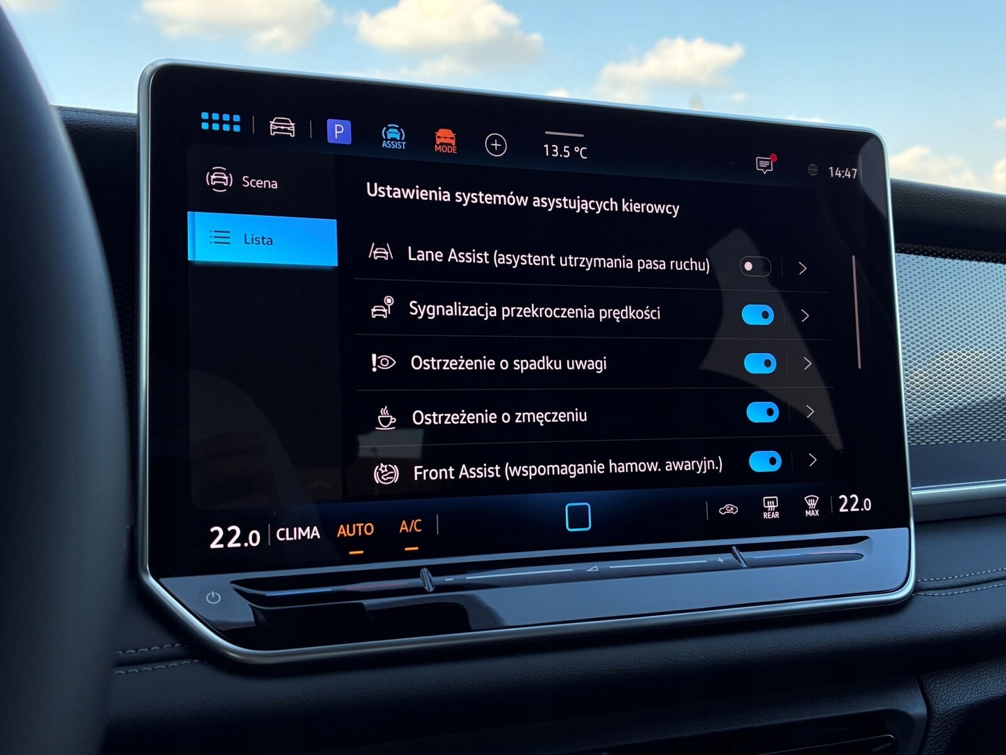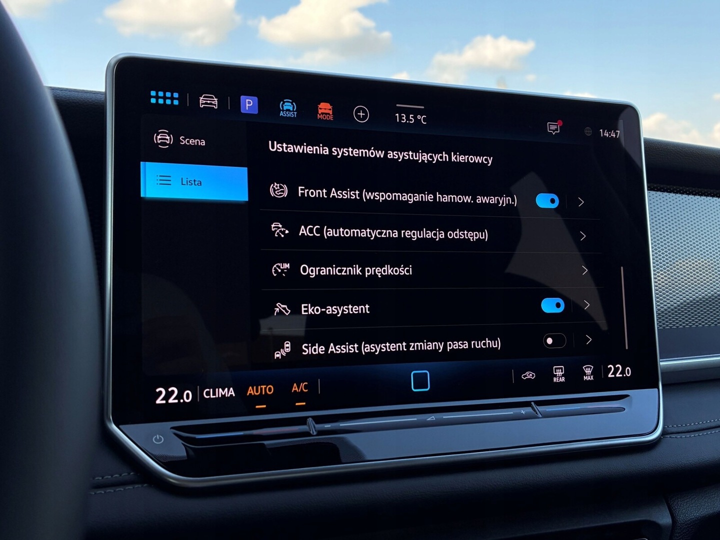 ABS, Asystent pasa ruchu, Poduszki boczne przednie, Poduszki boczne tylne, Czujnik deszczu, Czujnik zmierzchu, ESP (stabilizacja toru jazdy), Isofix, Kamera cofania, Czujniki parkowania tylne, Asystent parkowania, Poduszka powietrzna kierowcy, Poduszka powietrzna pasażera, Elektryczne szyby przednie, Elektryczne szyby tylne, Elektrycznie ustawiane lusterka, Podgrzewane lusterka boczne, Przyciemniane szyby, Zawieszenie adaptacyjne, Bluetooth, Radio niefabryczne, Nawigacja GPS, Alufelgi, System Start-Stop, Tempomat, Tempomat aktywny, Łopatki zmiany biegów