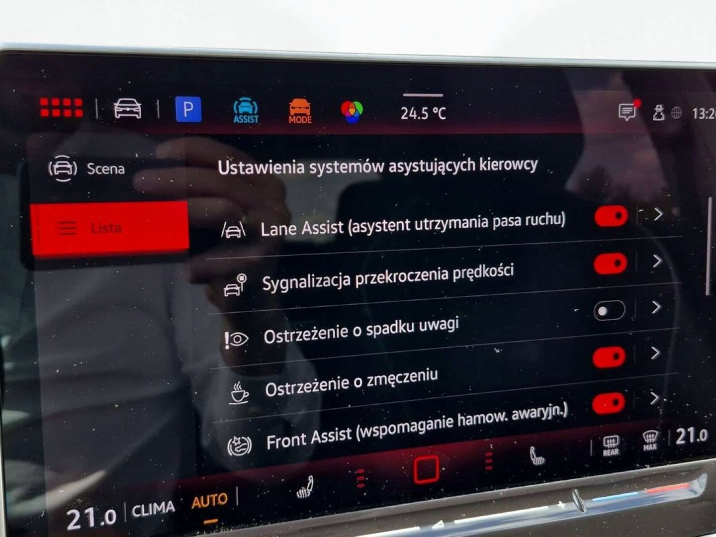 ABS, Alarm, ASR (kontrola trakcji), Asystent parkowania, Asystent pasa ruchu, Czujnik deszczu, Czujniki parkowania przednie, Czujniki parkowania tylne, Czujnik martwego pola, Czujnik zmierzchu, ESP (stabilizacja toru jazdy), Isofix, Kamera cofania, Kurtyny powietrzne, Poduszka powietrzna chroniąca kolana, Poduszka powietrzna kierowcy, Poduszka powietrzna pasażera, Poduszki boczne przednie, Poduszki boczne tylne, Elektryczne szyby przednie, Elektryczne szyby tylne, Elektrycznie ustawiane lusterka, Podgrzewana kierownica, Podgrzewane lusterka boczne, Podgrzewane przednie siedzenia, Podgrzewane tylne siedzenia, Przyciemniane szyby, Wielofunkcyjna kierownica, Wspomaganie kierownicy, Skórzana kierownica, Bluetooth, Gniazdo USB, Nawigacja GPS, Radio fabryczne, Bezkluczykowy dostęp, Elektrochromatyczne lusterka boczne, Łopatki zmiany biegów, Ogranicznik prędkości, System Start-Stop, Tempomat aktywny
