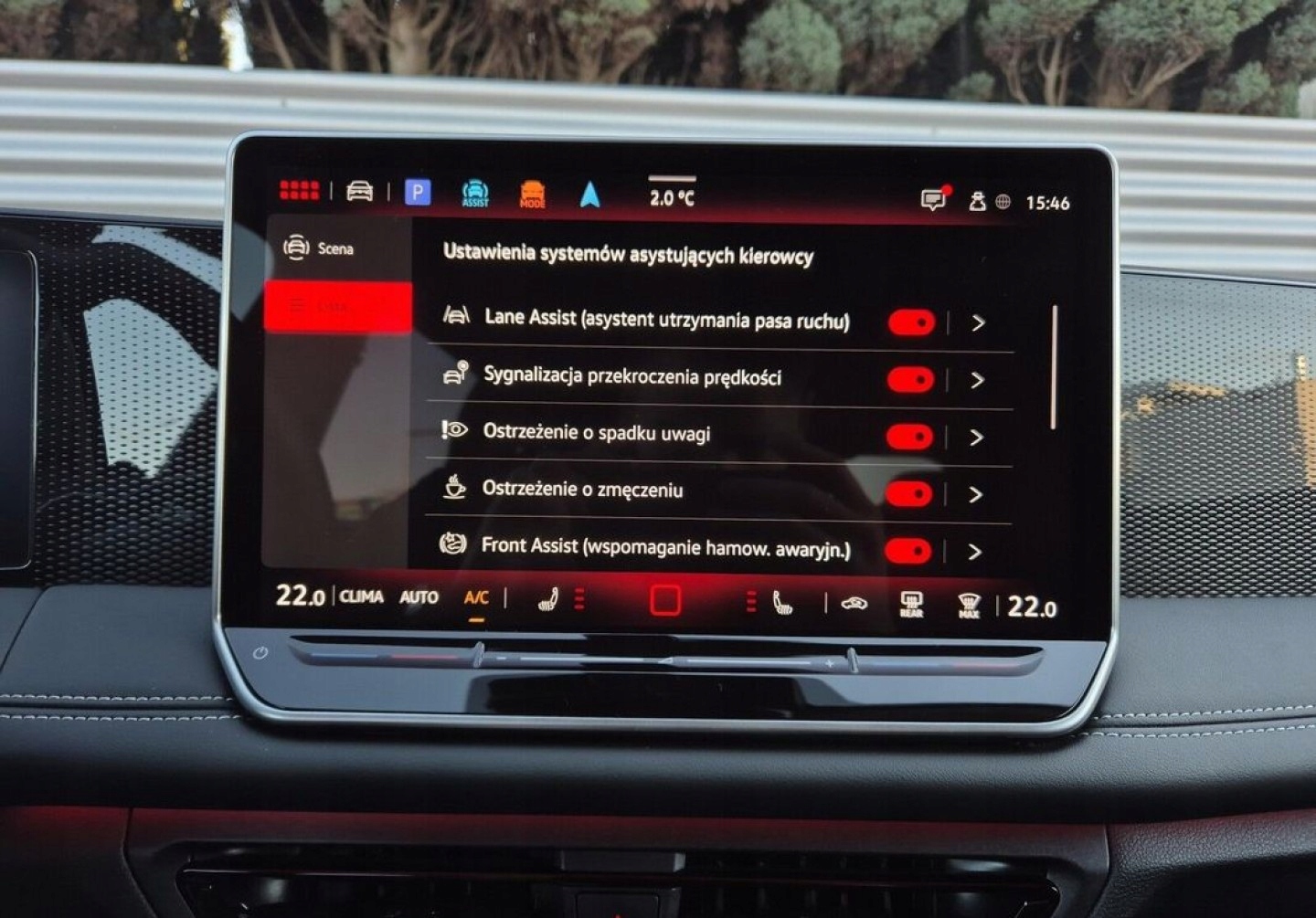 ABS, Alarm, ASR (kontrola trakcji), Asystent pasa ruchu, Czujnik deszczu, Czujniki parkowania przednie, Czujniki parkowania tylne, Czujnik zmierzchu, ESP (stabilizacja toru jazdy), Isofix, Kamera cofania, Kurtyny powietrzne, Poduszka powietrzna kierowcy, Poduszka powietrzna pasażera, Poduszki boczne przednie, Poduszki boczne tylne, Elektryczne szyby przednie, Elektryczne szyby tylne, Elektrycznie ustawiane lusterka, Podgrzewana kierownica, Podgrzewane lusterka boczne, Podgrzewane przednie siedzenia, Podgrzewane tylne siedzenia, Przyciemniane szyby, Wielofunkcyjna kierownica, Wspomaganie kierownicy, Skórzana kierownica, Bluetooth, Gniazdo USB, Nawigacja GPS, Radio fabryczne, Alufelgi, Bezkluczykowy dostęp, Elektrochromatyczne lusterka boczne, Łopatki zmiany biegów, System Start-Stop, Tempomat aktywny