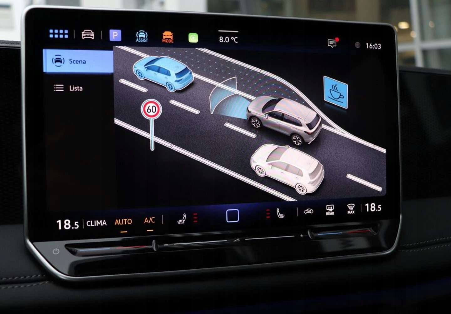 ABS, ASR (kontrola trakcji), Asystent parkowania, Asystent pasa ruchu, Czujnik deszczu, Czujniki parkowania tylne, ESP (stabilizacja toru jazdy), Isofix, Kamera cofania, Kurtyny powietrzne, Poduszka powietrzna chroniąca kolana, Poduszka powietrzna pasażera, Poduszki boczne przednie, Elektrycznie ustawiane lusterka, Podgrzewane lusterka boczne, Przyciemniane szyby, Wielofunkcyjna kierownica, Wspomaganie kierownicy, Skórzana kierownica, Bluetooth, Radio fabryczne, Alufelgi, Bezkluczykowy dostęp, Ogranicznik prędkości, System Start-Stop, Tempomat aktywny