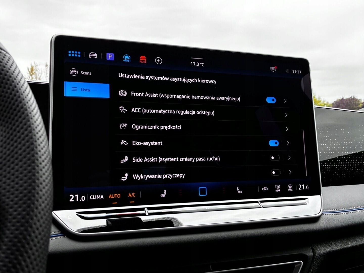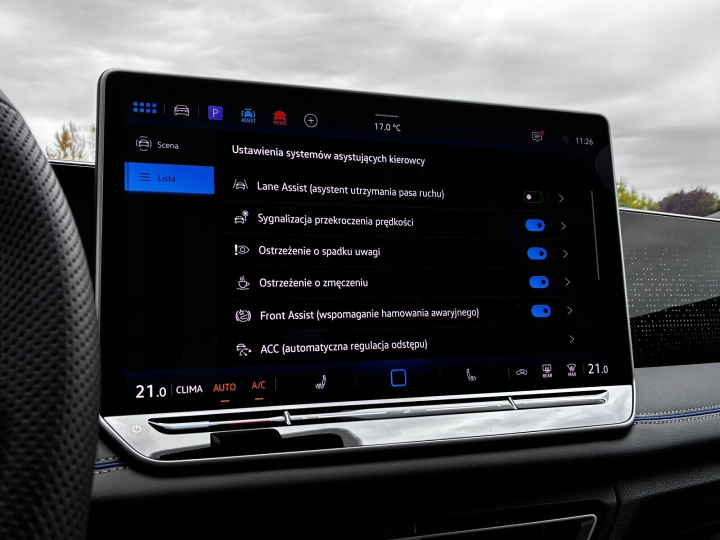 ABS, Asystent pasa ruchu, Poduszki boczne przednie, Poduszki boczne tylne, Czujnik deszczu, Czujnik zmierzchu, Isofix, Kamera cofania, Czujniki parkowania przednie, Asystent parkowania, Poduszka powietrzna kierowcy, Poduszka powietrzna pasażera, Elektryczne szyby przednie, Elektryczne szyby tylne, Elektrycznie ustawiane fotele, Elektrycznie ustawiane lusterka, Podgrzewana przednia szyba, Podgrzewane lusterka boczne, Podgrzewane przednie siedzenia, Przyciemniane szyby, Wspomaganie kierownicy, Zawieszenie adaptacyjne, Bluetooth, Gniazdo USB, Radio niefabryczne, Nawigacja GPS, Alufelgi, System Start-Stop, Tempomat, Tempomat aktywny, Łopatki zmiany biegów