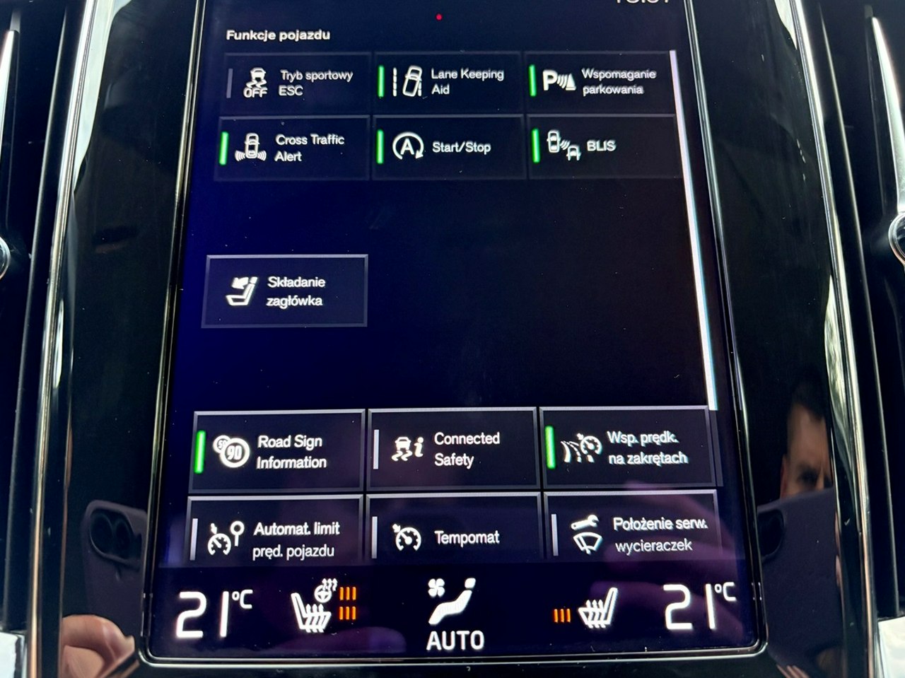 ABS, Czujnik deszczu, Czujniki parkowania tylne, Asystent pasa ruchu, Czujnik martwego pola, Kurtyny powietrzne, Poduszki boczne przednie, Poduszka powietrzna kierowcy, Poduszka powietrzna pasażera, ESP (stabilizacja toru jazdy), Isofix, Poduszki boczne tylne, Elektryczne szyby przednie, Elektryczne szyby tylne, Elektrycznie ustawiane lusterka, Podgrzewane przednie siedzenia, Wielofunkcyjna kierownica, Elektrycznie ustawiane fotele, Tapicerka ciemna, Tapicerka skórzana, Bluetooth, Gniazdo USB, Nawigacja GPS, Alufelgi, Relingi dachowe, Tempomat, Elektrochromatyczne lusterka boczne, Elektrochromatyczne lusterko wsteczne, Hak, Tempomat aktywny