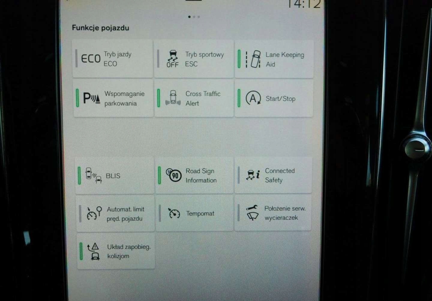 ABS, ASR (kontrola trakcji), Asystent pasa ruchu, Czujnik deszczu, Czujniki parkowania przednie, Czujniki parkowania tylne, Czujnik martwego pola, Czujnik zmierzchu, ESP (stabilizacja toru jazdy), Isofix, Poduszka powietrzna chroniąca kolana, Poduszka powietrzna kierowcy, Poduszka powietrzna pasażera, Poduszki boczne przednie, Elektryczne szyby przednie, Elektryczne szyby tylne, Elektrycznie ustawiane lusterka, Podgrzewane lusterka boczne, Przyciemniane szyby, Tapicerka skórzana, Wielofunkcyjna kierownica, Wspomaganie kierownicy, Skórzana kierownica, Bluetooth, Gniazdo USB, Nawigacja GPS, Radio fabryczne, Alufelgi, Elektrochromatyczne lusterka boczne, System Start-Stop, Tempomat aktywny