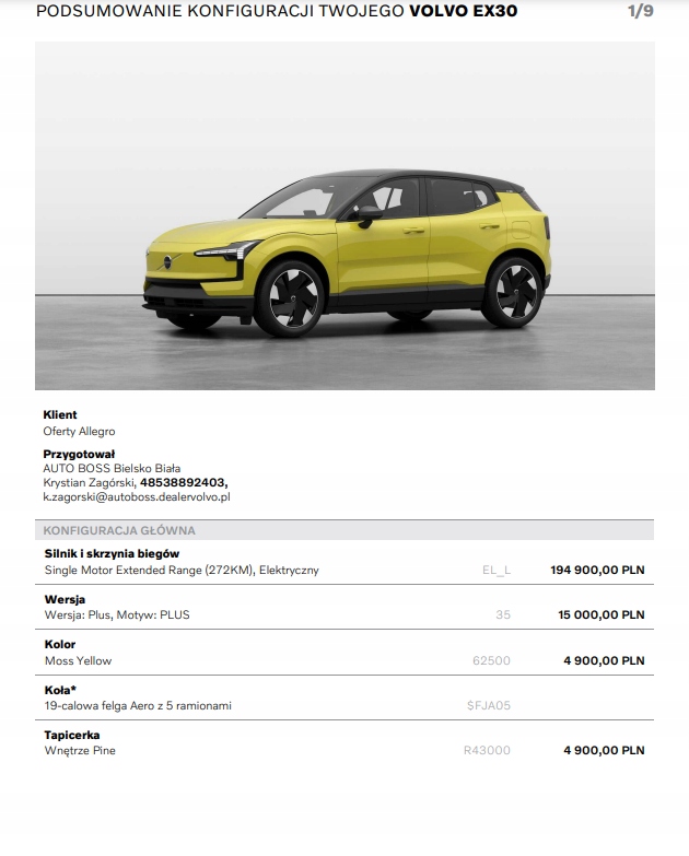 Volvo EX30 SAMOCHÓD DEMONSTRACYJNY - OD RĘKI