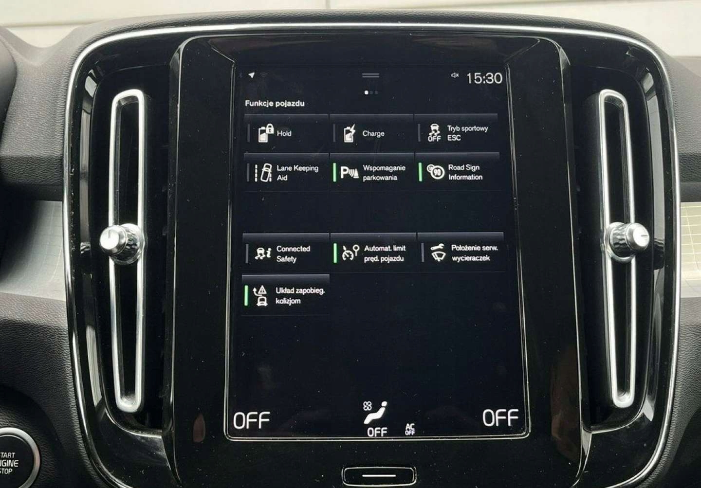 ABS, ASR (kontrola trakcji), Czujnik deszczu, Czujniki parkowania przednie, Czujniki parkowania tylne, Czujnik zmierzchu, ESP (stabilizacja toru jazdy), Isofix, Poduszka powietrzna kierowcy, Poduszka powietrzna pasażera, Poduszki boczne przednie, Elektryczne szyby przednie, Elektryczne szyby tylne, Elektrycznie ustawiane lusterka, Podgrzewane lusterka boczne, Tapicerka tekstylna, Wielofunkcyjna kierownica, Wspomaganie kierownicy, Zawieszenie adaptacyjne, Skórzana kierownica, Bluetooth, Gniazdo USB, Nawigacja GPS, Radio fabryczne, Elektrochromatyczne lusterka boczne, Ogranicznik prędkości, System Start-Stop, Tempomat