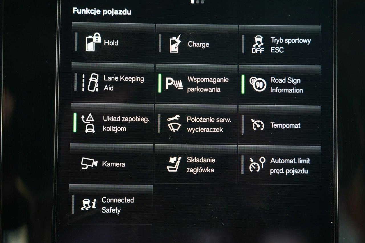 ABS, ASR (kontrola trakcji), Immobilizer, Czujniki parkowania tylne, Czujnik deszczu, Isofix, Kamera cofania, ESP (stabilizacja toru jazdy), Poduszki boczne tylne, Kurtyny powietrzne, Poduszki boczne przednie, Poduszka powietrzna chroniąca kolana, Poduszka powietrzna pasażera, Poduszka powietrzna kierowcy, Czujniki parkowania przednie, Asystent parkowania, Asystent pasa ruchu, Czujnik martwego pola, Wielofunkcyjna kierownica, Elektryczne szyby tylne, Elektryczne szyby przednie, Elektrycznie ustawiane lusterka, Podgrzewane przednie siedzenia, Wspomaganie kierownicy, Przyciemniane szyby, Podgrzewana przednia szyba, Podgrzewane lusterka boczne, Zawieszenie adaptacyjne, Elektrycznie ustawiane fotele, Tapicerka skórzana, Tapicerka ciemna, Nawigacja GPS, Odtwarzacz DVD, Bluetooth, Gniazdo AUX, Gniazdo SD, Gniazdo USB, MP3, Radio fabryczne, CD, Centralny zamek, Komputer pokładowy, Szyberdach, Tempomat, Alufelgi, Relingi dachowe, Hak, System Start-Stop, Dach panoramiczny, Elektrochromatyczne lusterka boczne, Elektrochromatyczne lusterko wsteczne, Ogranicznik prędkości, Tempomat aktywny