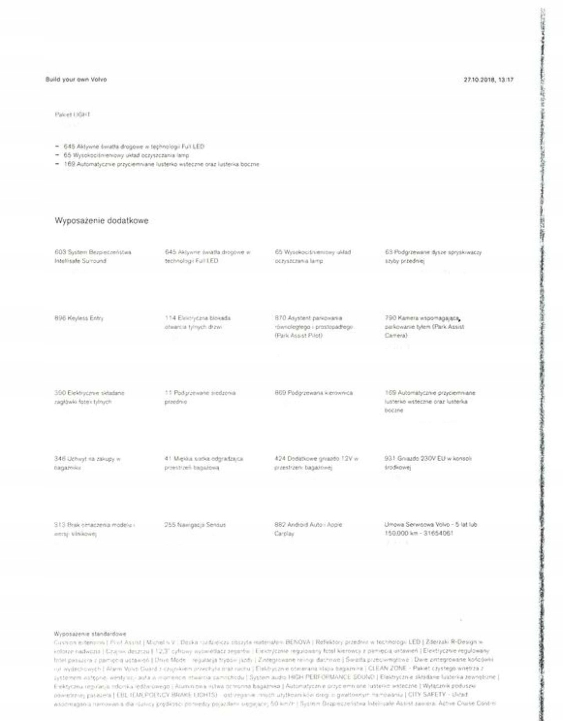 ABS, ASR (kontrola trakcji), Czujnik deszczu, Czujniki parkowania przednie, Czujniki parkowania tylne, Czujnik zmierzchu, ESP (stabilizacja toru jazdy), Isofix, Kamera cofania, Kurtyny powietrzne, Poduszka powietrzna chroniąca kolana, Poduszka powietrzna kierowcy, Poduszka powietrzna pasażera, Poduszki boczne przednie, Elektryczne szyby przednie, Elektryczne szyby tylne, Elektrycznie ustawiane fotele, Elektrycznie ustawiane lusterka, Podgrzewana kierownica, Podgrzewana przednia szyba, Podgrzewane lusterka boczne, Podgrzewane przednie siedzenia, Podgrzewane tylne siedzenia, Tapicerka skórzana, Wielofunkcyjna kierownica, Wspomaganie kierownicy, Zawieszenie adaptacyjne, Skórzana kierownica, Bluetooth, Gniazdo USB, Nawigacja GPS, Radio fabryczne, Alufelgi, Elektrochromatyczne lusterka boczne, System Start-Stop, Tempomat aktywny