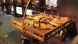 Pojazd wg pomysłu Leonarda da Vinci z końca XV wieku, napędzany sprężyną. Prawdopodobnie służył jedynie jako zabawka.