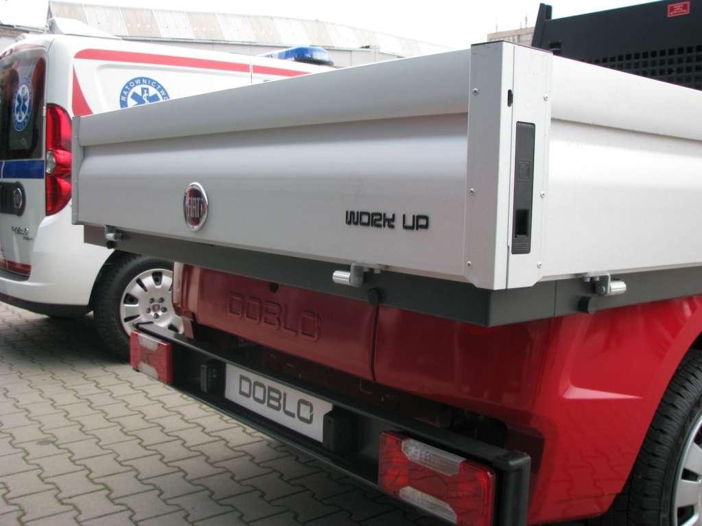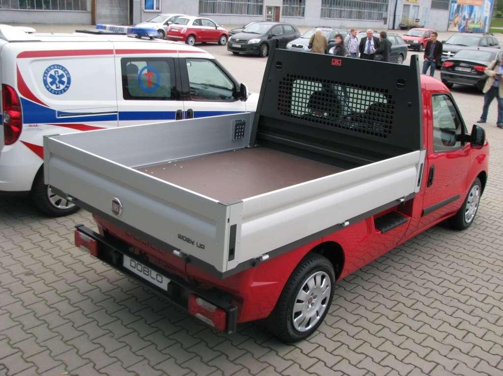 Fiat odczuł nieco wycofanie z produkcji małego Seicento w wersji van, które było najtańszym tego typu autem na rynku. Na razie nie ma dla niego następcy. Fiat postanowił natomiast wejść mocniej w segment pick-upów. W Polsce dominują w nim dobrze wyposażone samochody z napędem na 4 koła, kupowane głównie z powodu ulg podatkowych jako protezy luksusowych limuzyn. Na całym świecie to przede wszystkim samochody do pracy i Fiat Doblo Work Up jest także samochodem typowo roboczym. Zbudowano go na bazie platformy o wydłużonym rozstawie osi. Skrzynia ładunkowa ma długość 230 cm i szerokość 192 cm, co daje powierzchnię 4 mkw. Od strony kabiny jest mocna metalowa kratownica, chroniąca dwie osoby jadące w środku przed ładunkami zamocowanymi na skrzyni. Z pozostałych trzech stron są rozkładane, aluminiowe burty, które w zewnętrznych ściankach mają rowek do zamocowania plandek lub pasów przytrzymujących ładunki. W podłodze jest także 6 wysuwanych uchwytów do mocowania ładunków. Skrzynia ma tonę ładowności. Pod nią wygospodarowano schowek na długie narzędzia, np. łopaty.