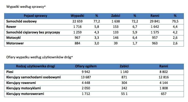 *Dane pochodzą z raportu Komendy Głównej Policji „Wypadki drogowe w Polsce w 2013 roku”.